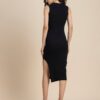 Features: Wide Neck, Sleeveless, Slit On Side, Bodycon, Lightweight, Solid Pattern.