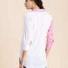 Features: High-Low Hem, Buttoned, Front Pocket, Cuffed Elbow Sleeves, Lightweight, Loose Fit And All Over Printed Pattern