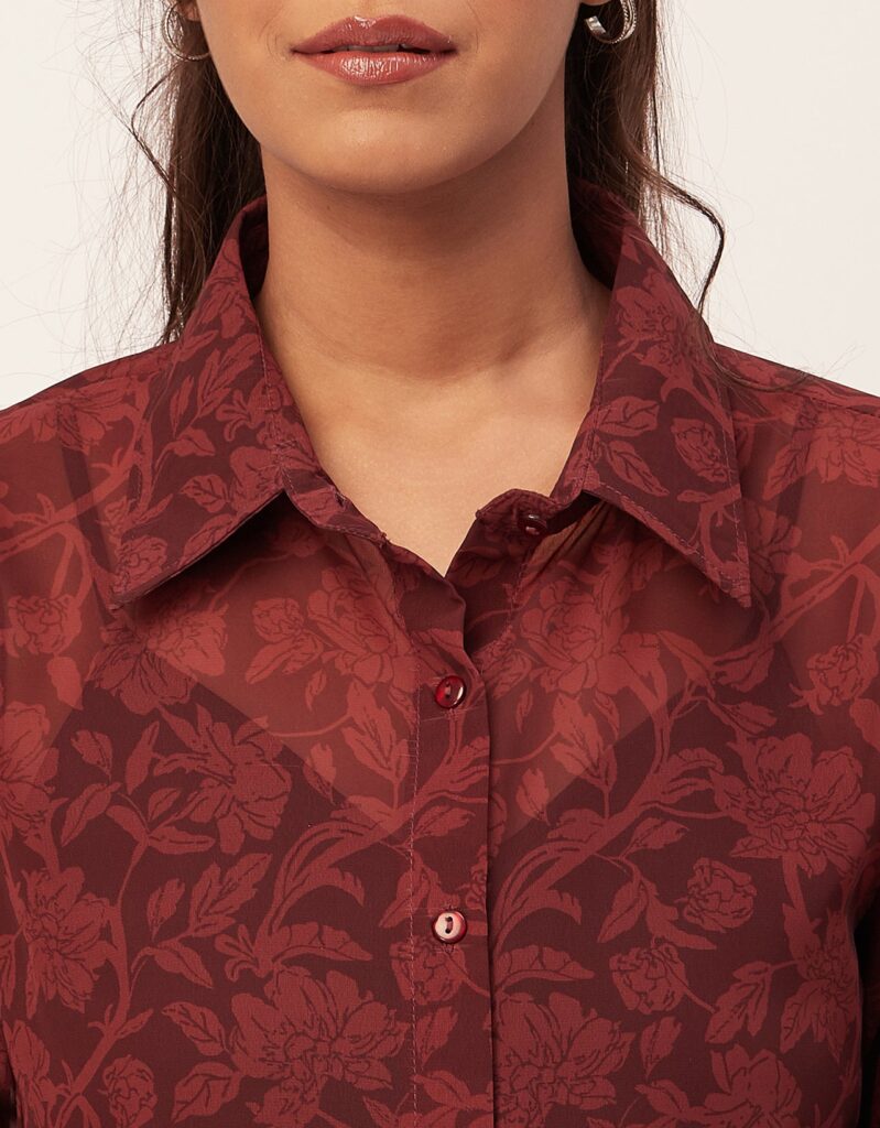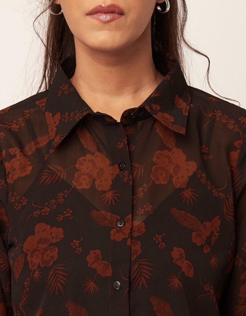 Button Down Collared Sheer Shirt