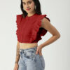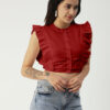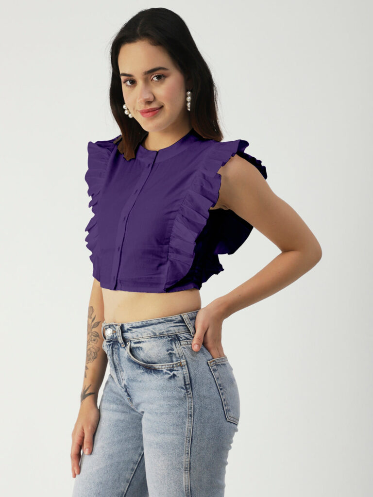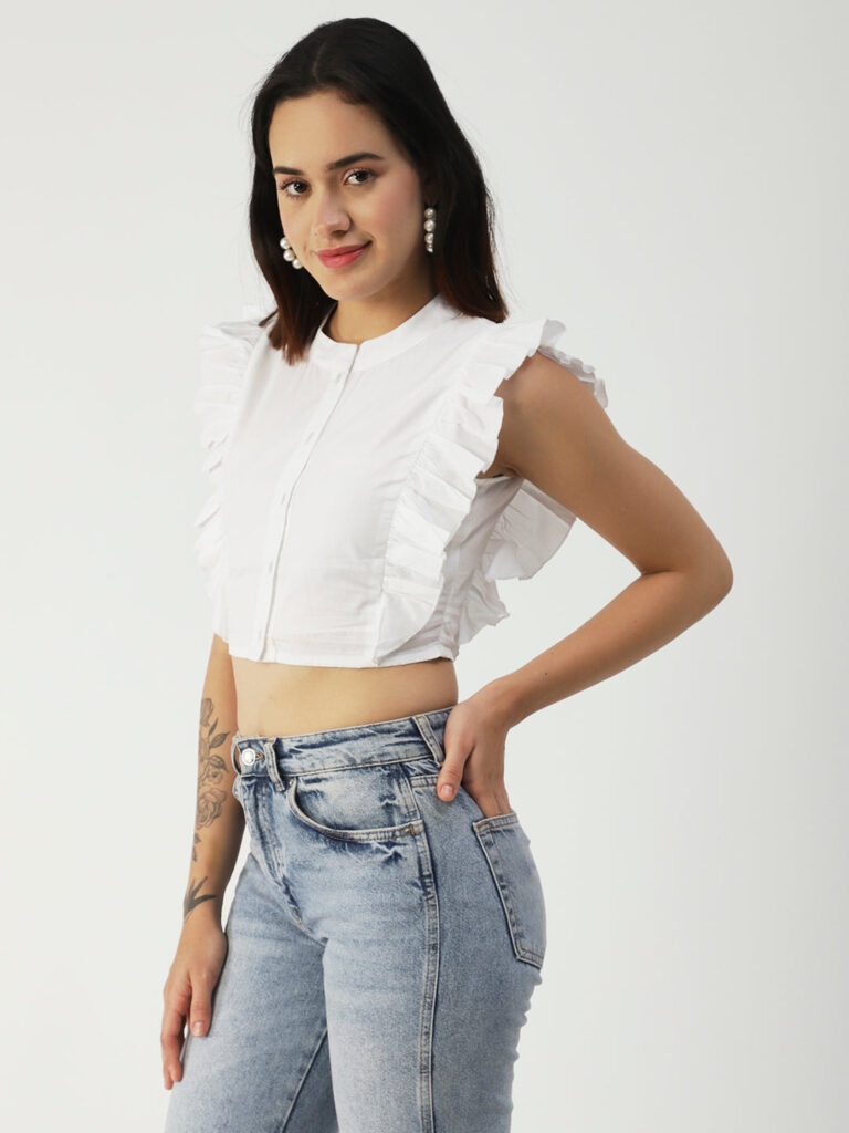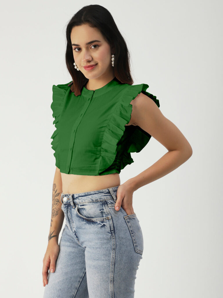 Tags: solid tops for women, crop tops for women, cotton tops for women, tops for women trendy, flutter sleeve tops for girl, butterfly sleeve tops, round neck button down crop top