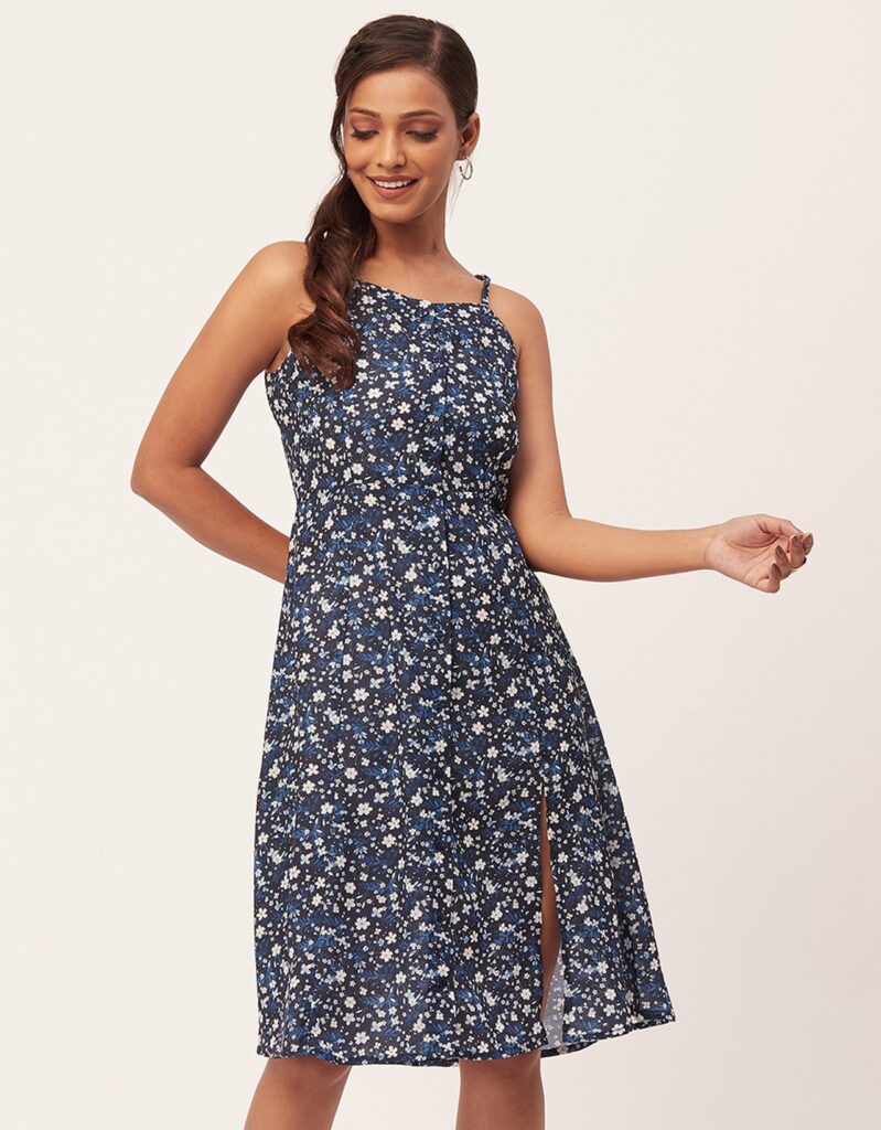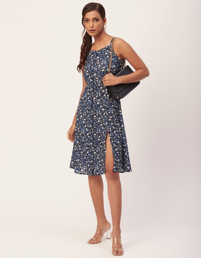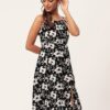 Features: Sleeveless, Button-Down, Side Slit, Light Weight, Knee-Length, Flared Hem, All Over Prints.