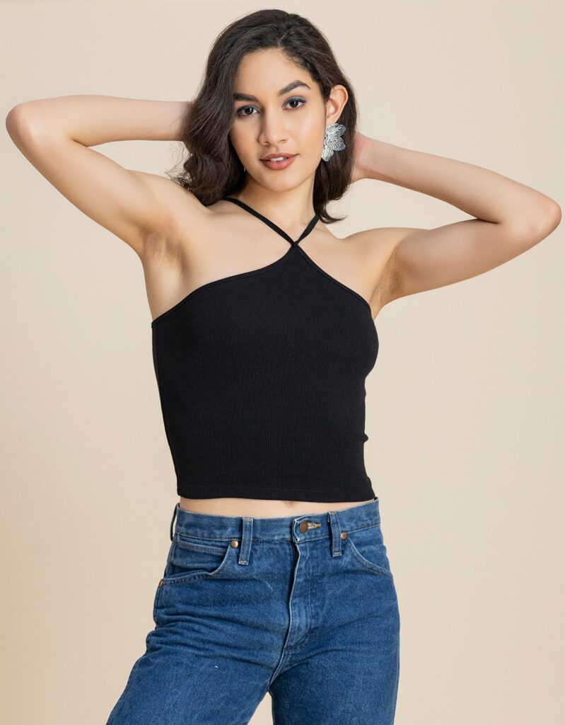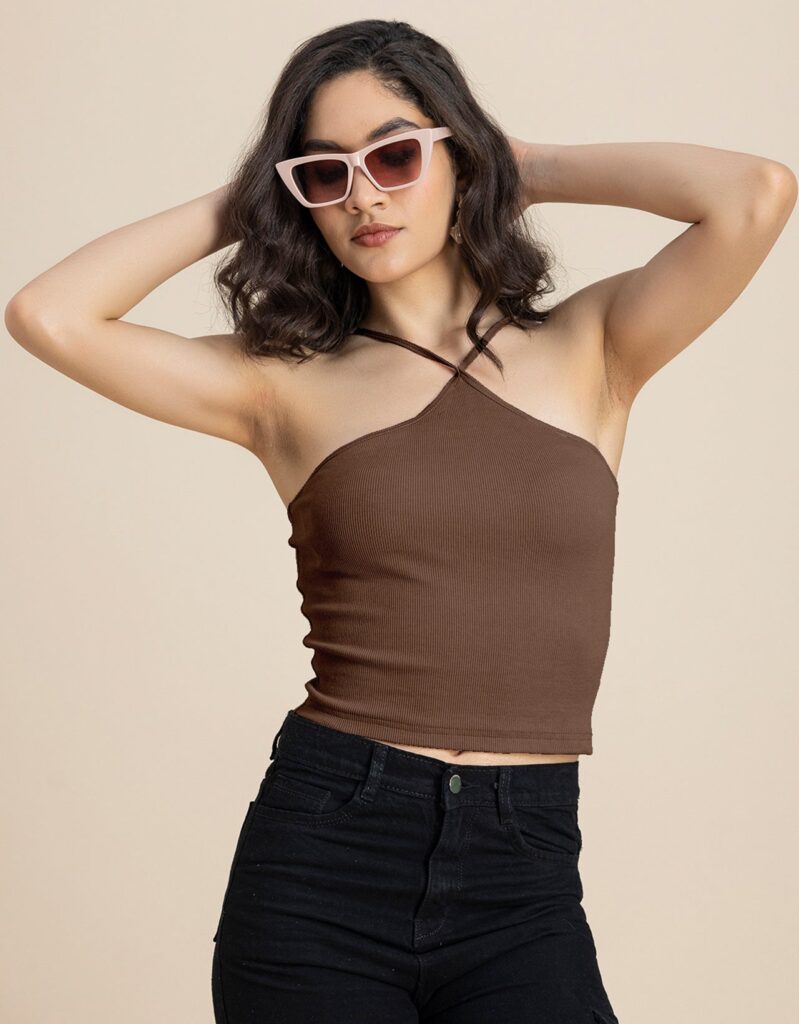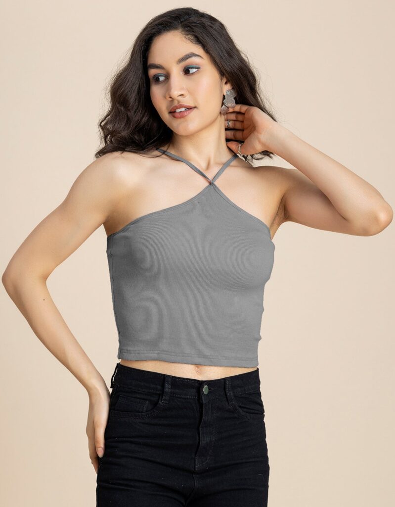 Casual Halter Neck Crop Top For Womenshop