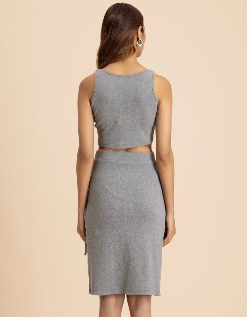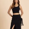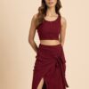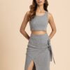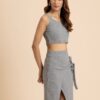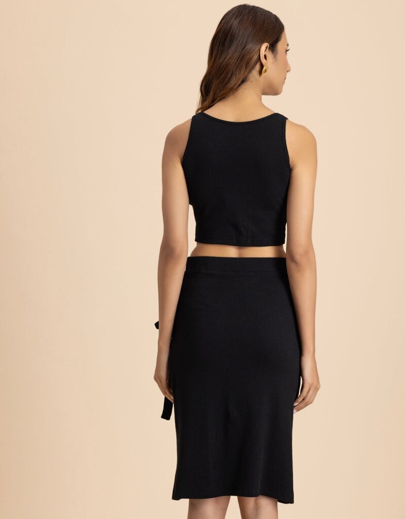 FEATURES: Sleeveless Crop Top, Wrap Style Skirt With Elastic Waist, Bodycon Fit, Lightweight.