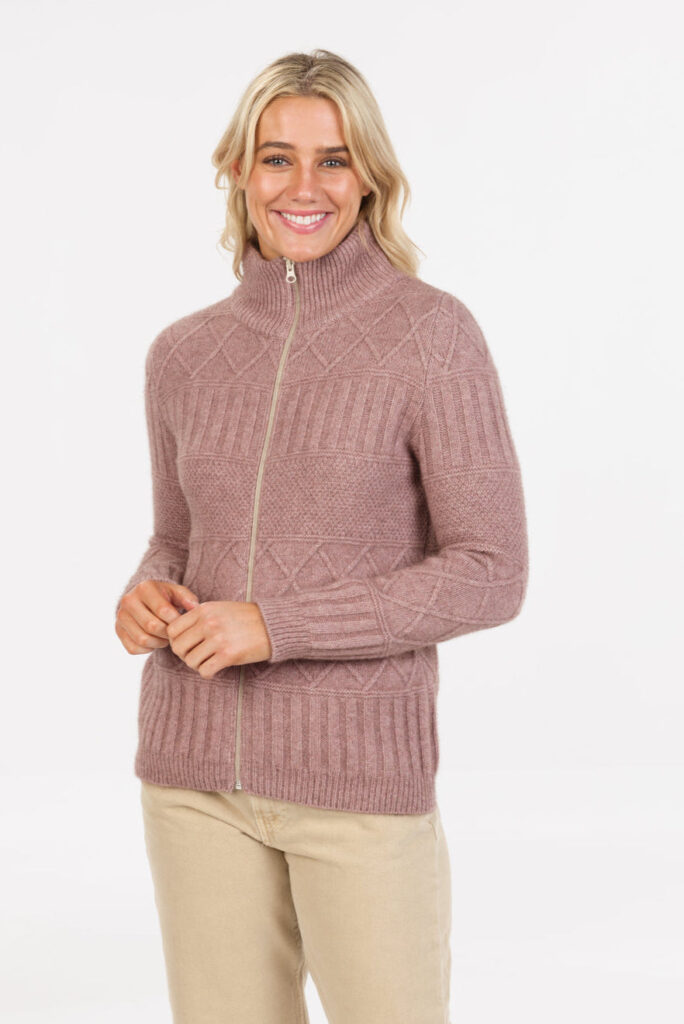 Knitted with a distinctive cross-stitch pattern, this jacket is engineered to maximize dimensional texture and thermal loft, providing superior warmth without weight. The elegant, resilient structure ensures long-term shape retention, while the full-zip design offers adaptive layering versatility and easy temperature regulation. Crafted in our luxurious blend, this is a durable, high-function piece that elevates everyday wear.