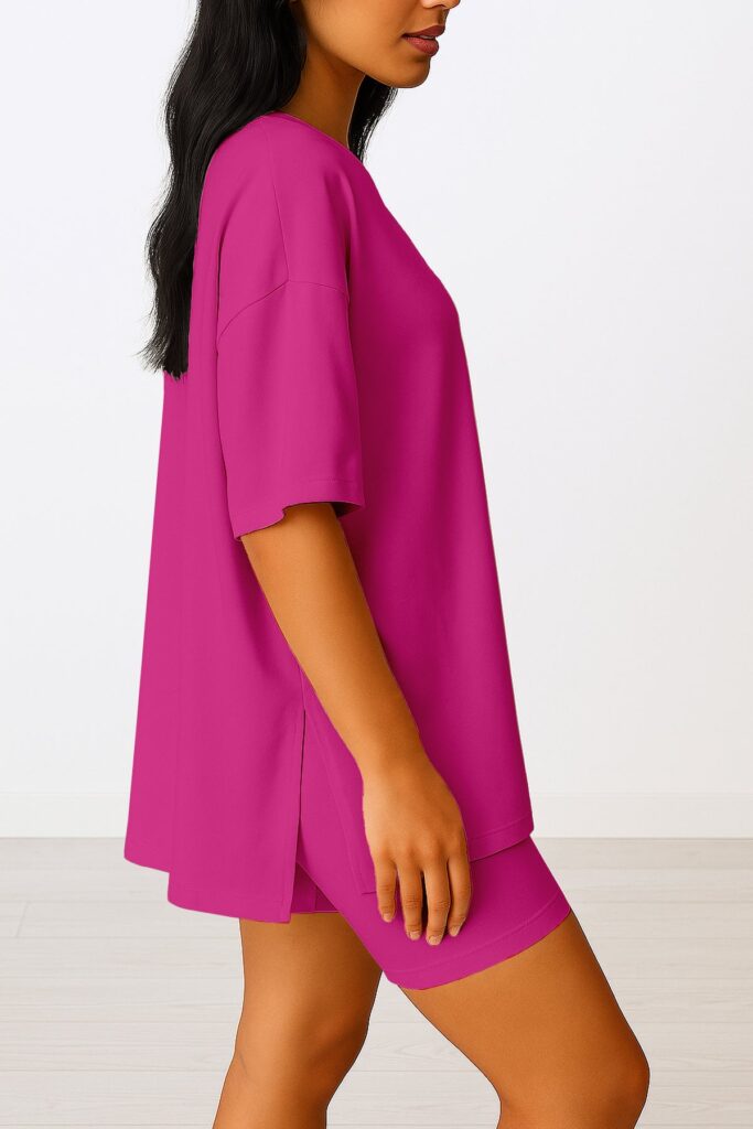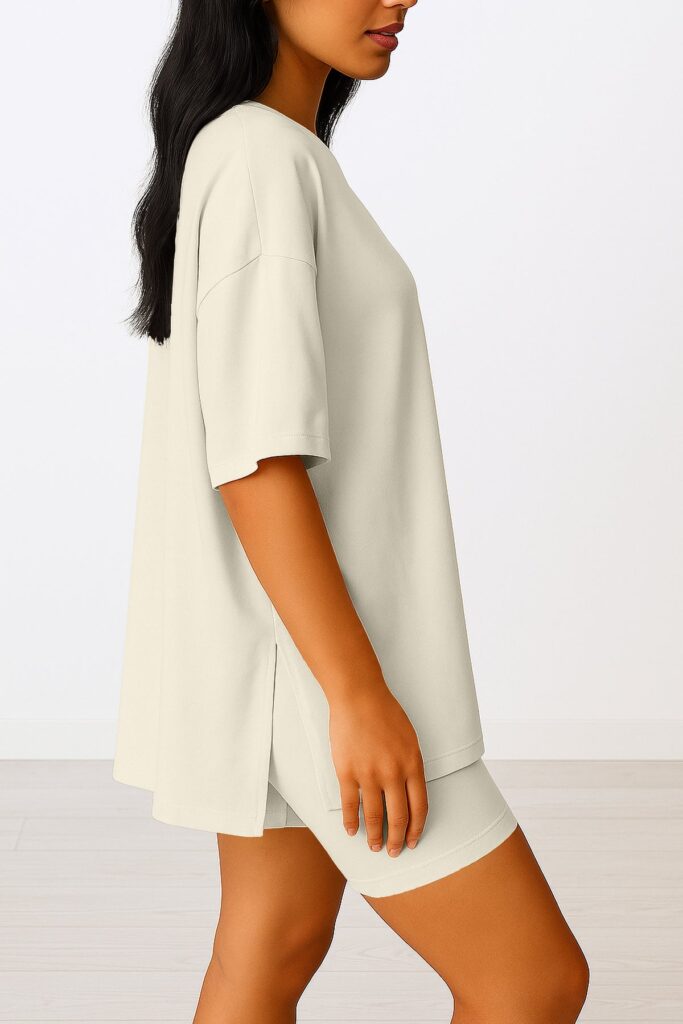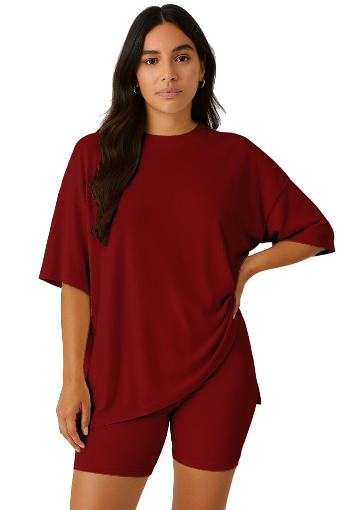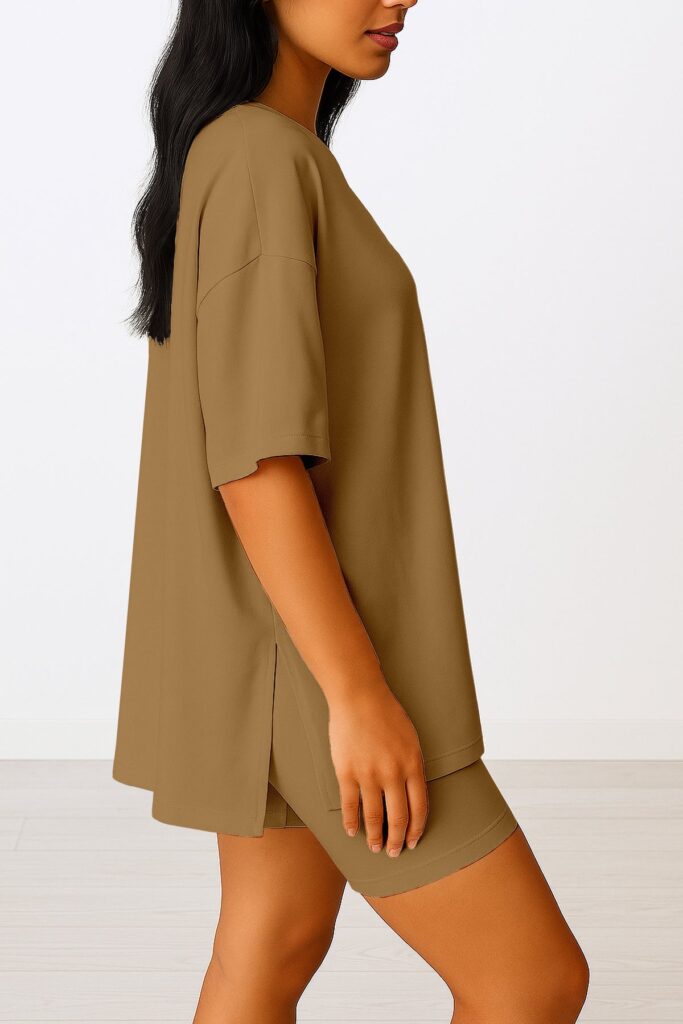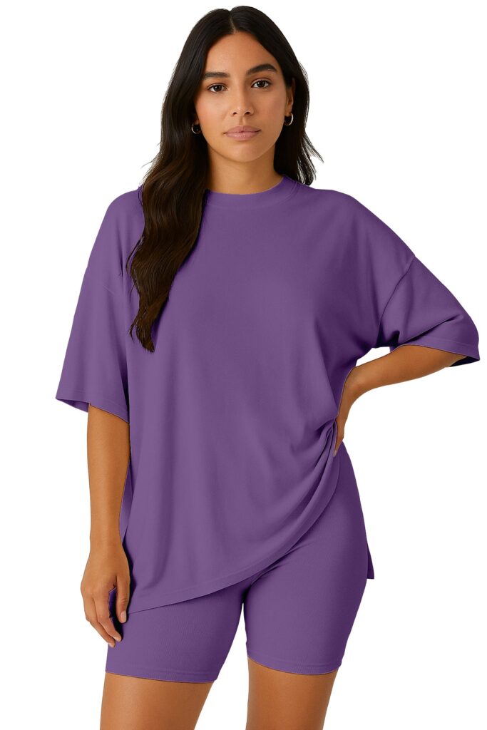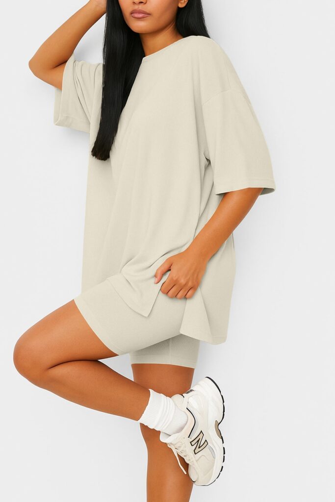 Moomaya Women’s Oversized T-Shirt and Biker Shorts Lounge Set – 2 Piece