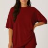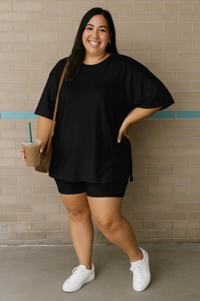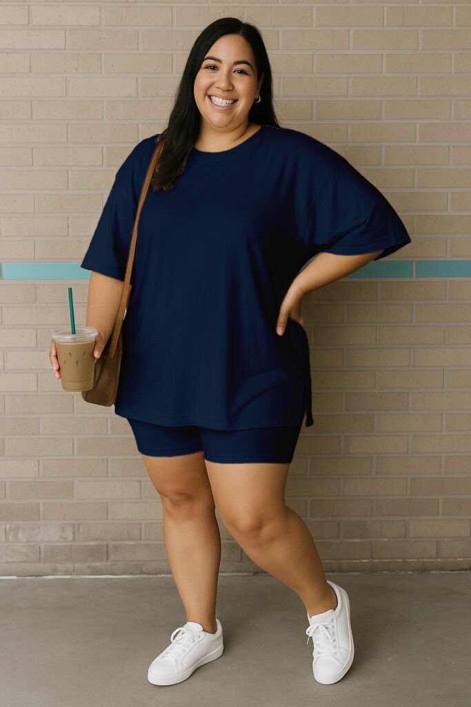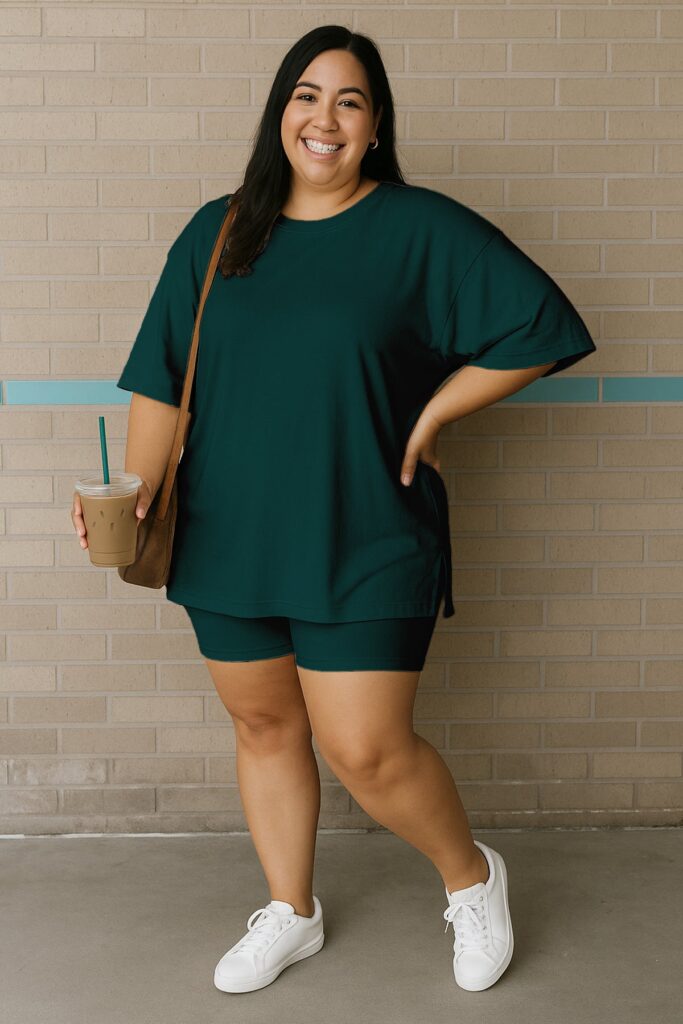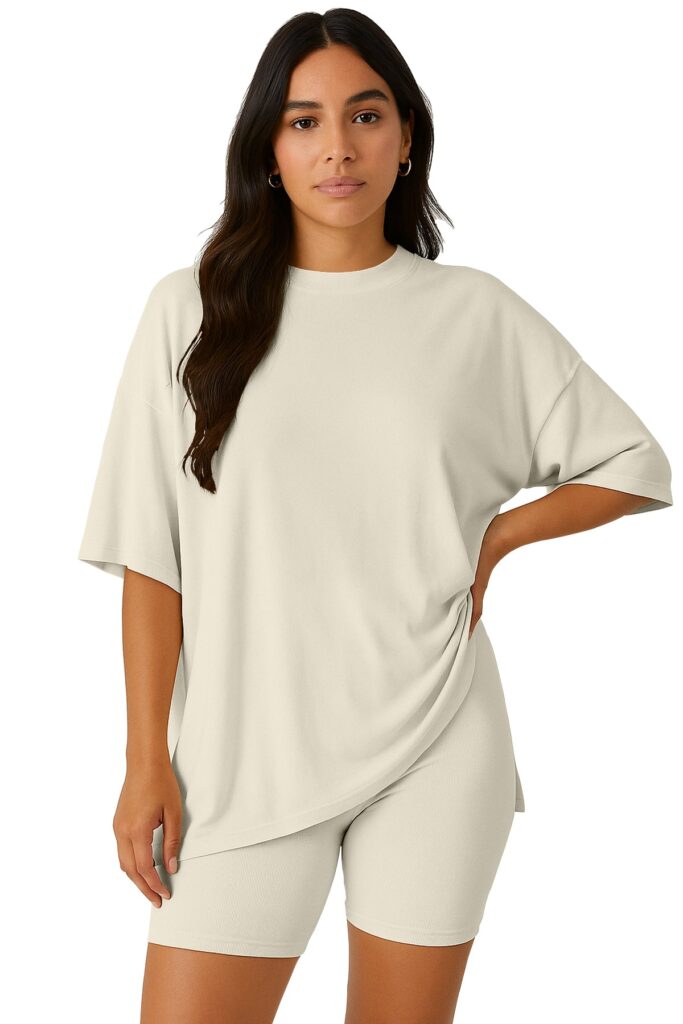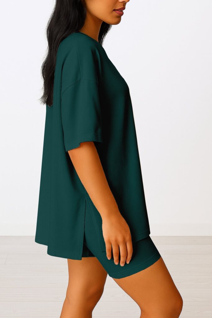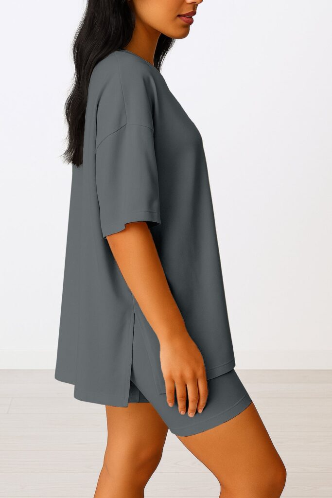 Moomaya Women’s Oversized T-Shirt and Biker Shorts Lounge Set – 2 Piece
