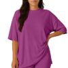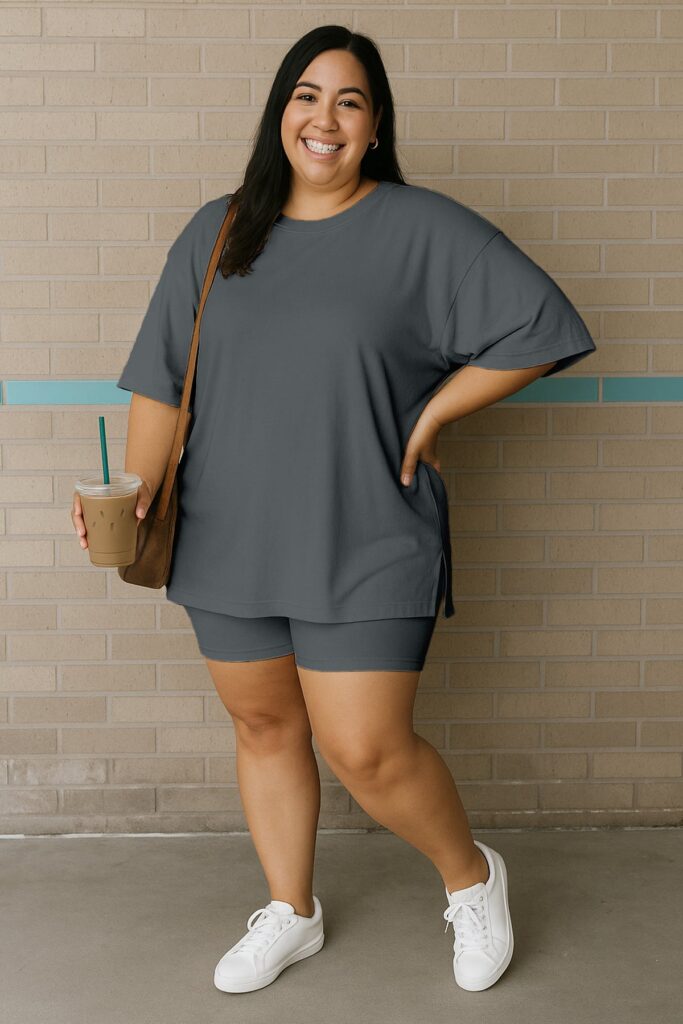 Moomaya Women's Oversized T-Shirt and Biker Shorts Lounge Set - 2 PieceMoomaya Women’s Oversized T-Shirt and Biker Shorts Lounge Set – 2 Piece