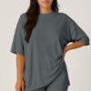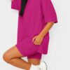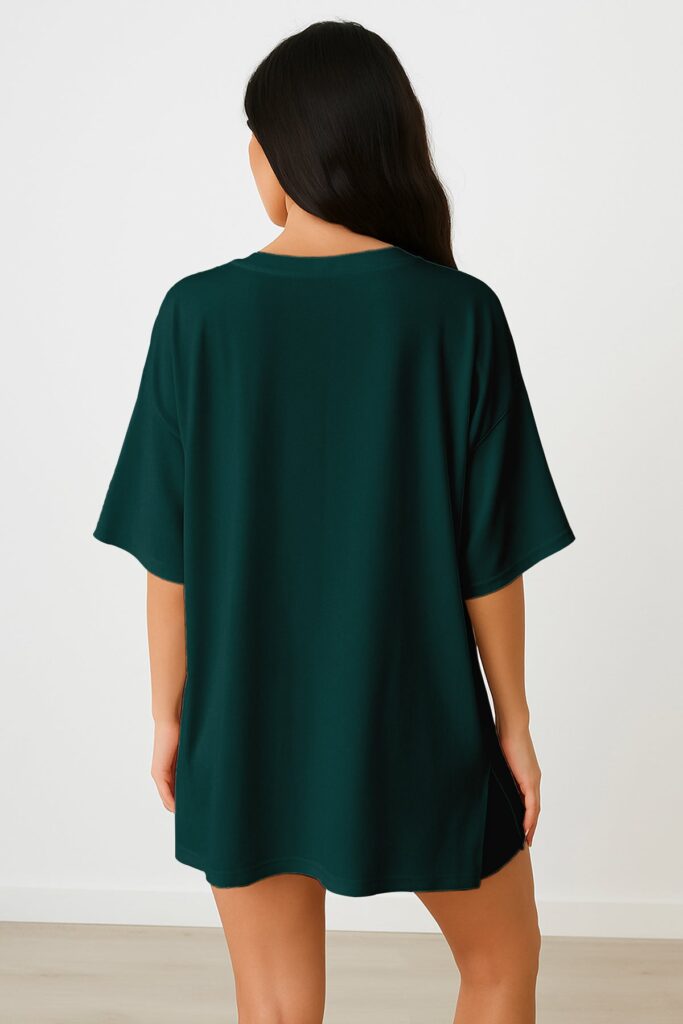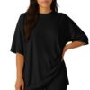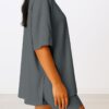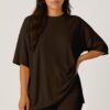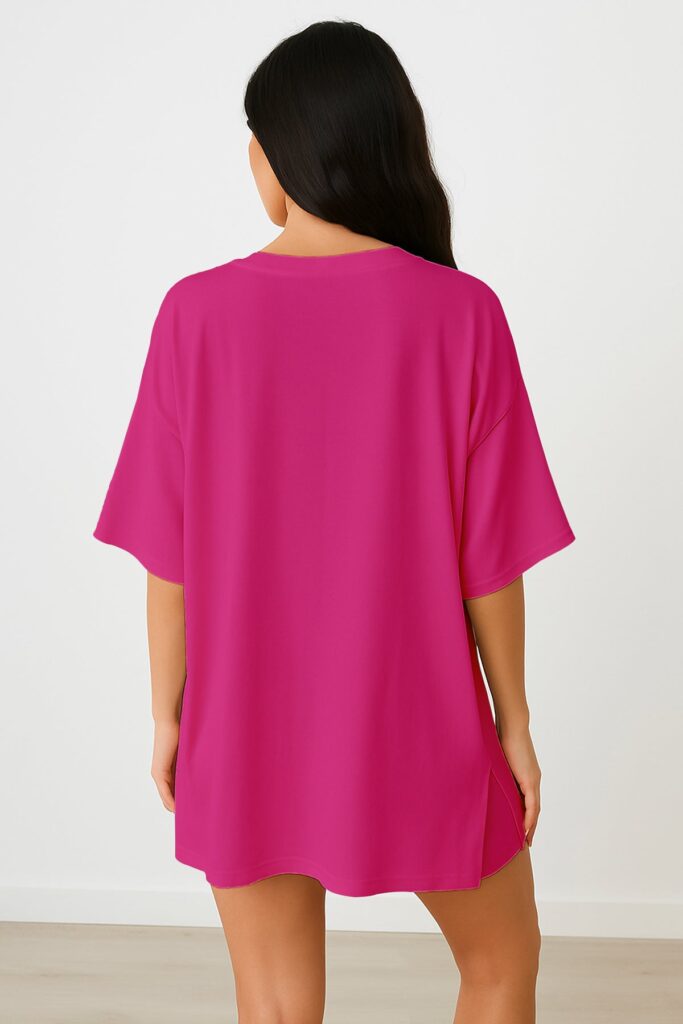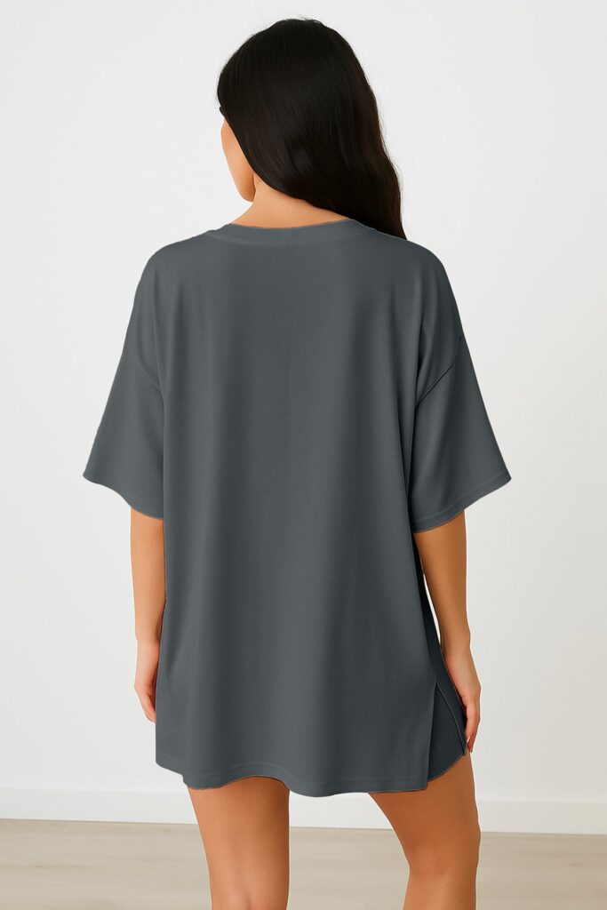 Relaxed Oversized Fit: Drop-shoulder, oversized short sleeve t-shirt with a high-low hem and side slit for an effortlessly cool and laid-back vibe.
