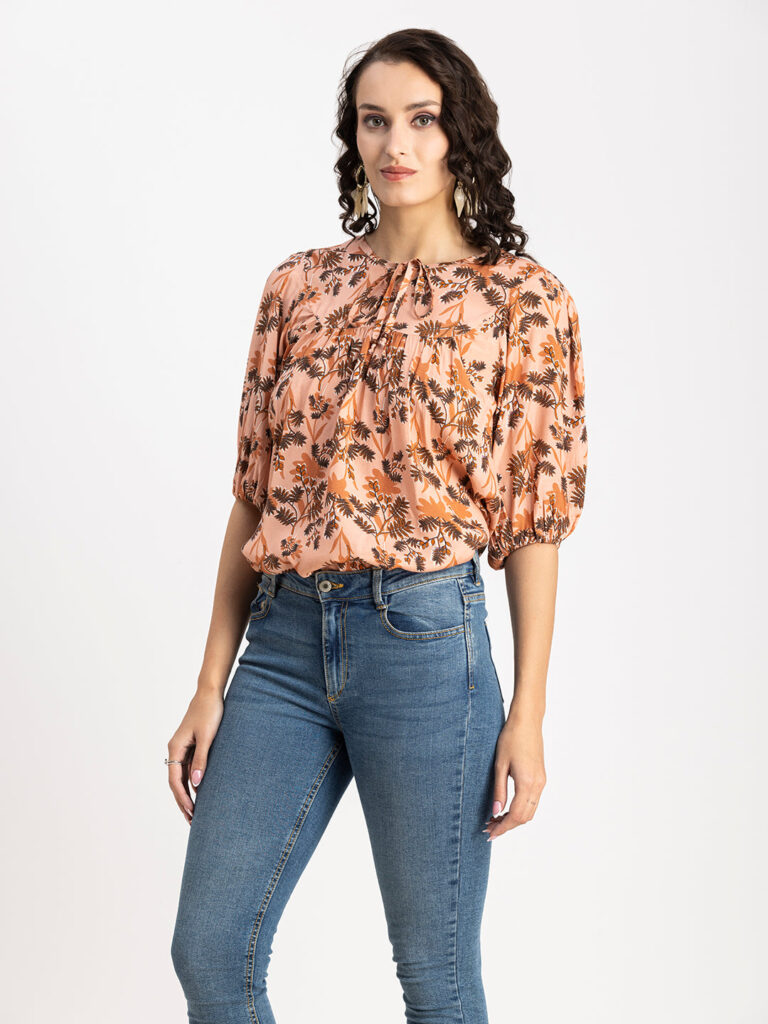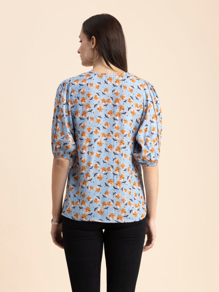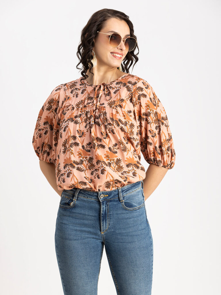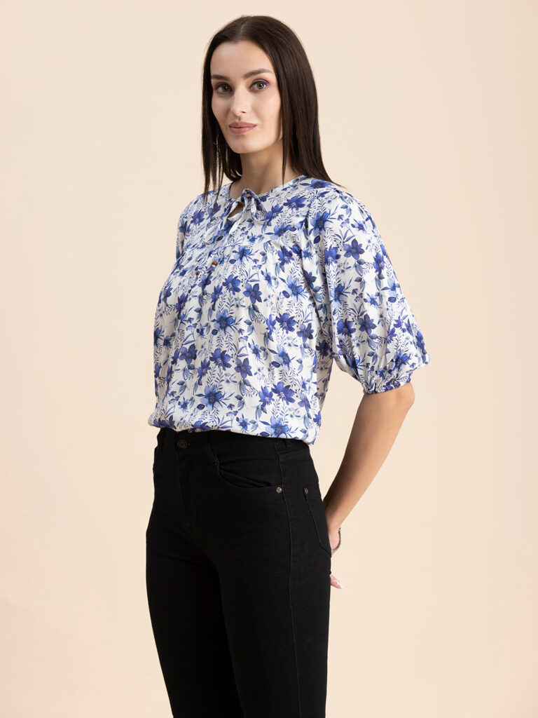 Tags: Printed Tops For Women, Summer Tops For Women, Keyhole Neck Tops For Women, Lantern Sleeves Tops For Women, Casual Tops For Women
