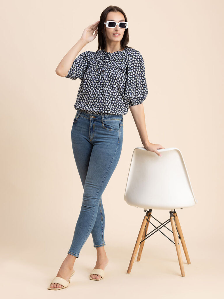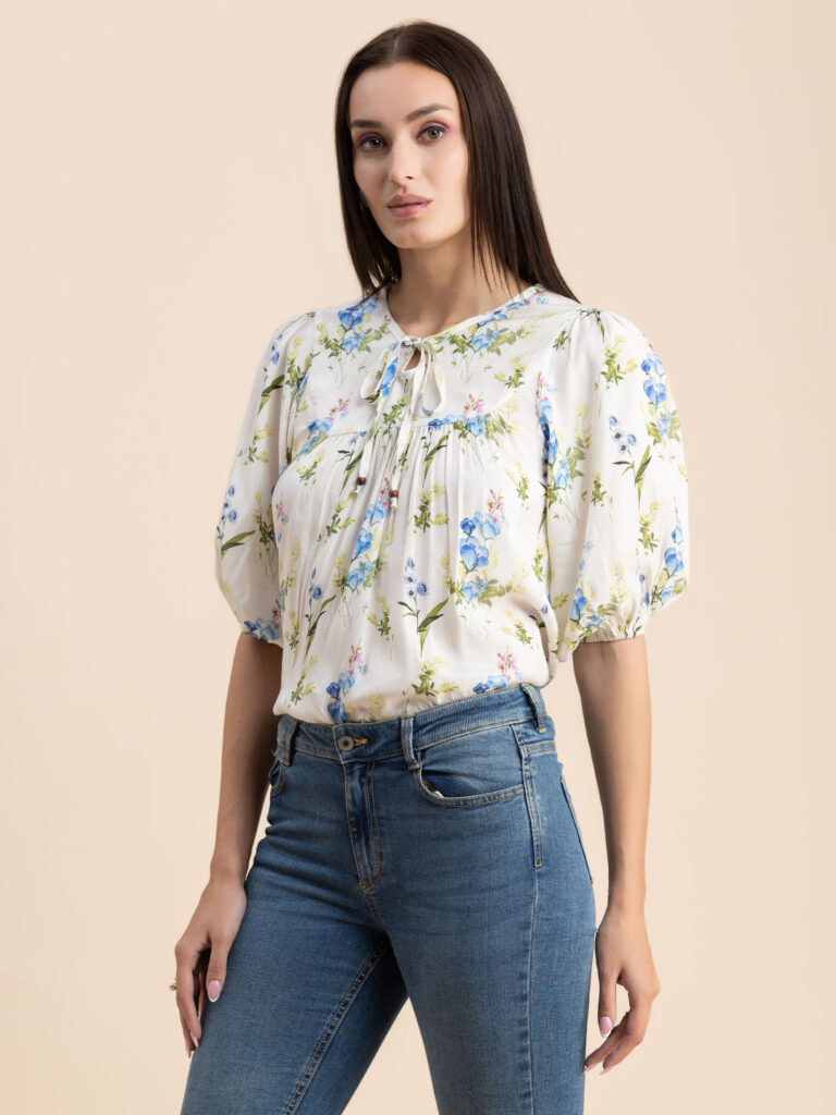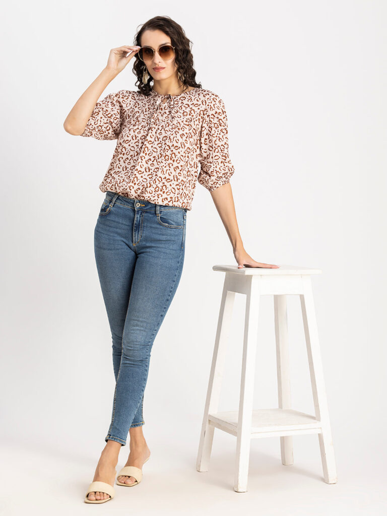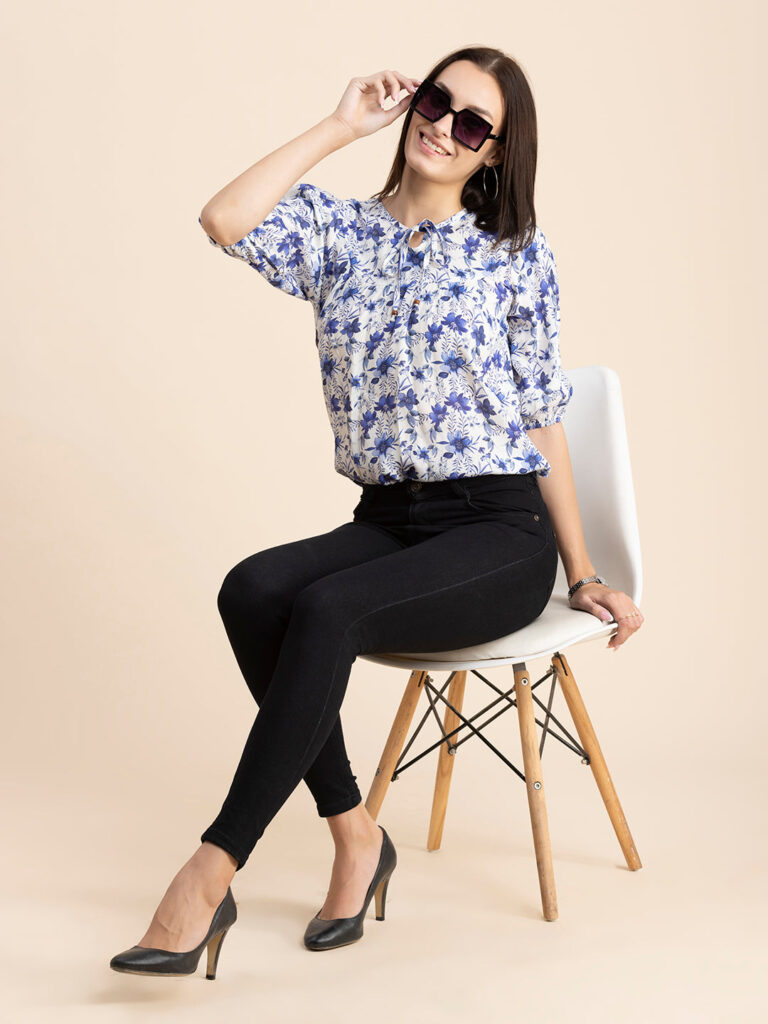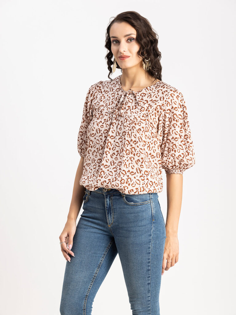 Tags: Printed Tops For Women, Summer Tops For Women, Keyhole Neck Tops For Women, Lantern Sleeves Tops For Women, Casual Tops For Women