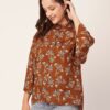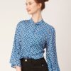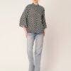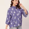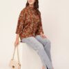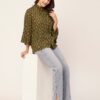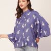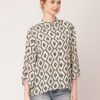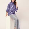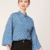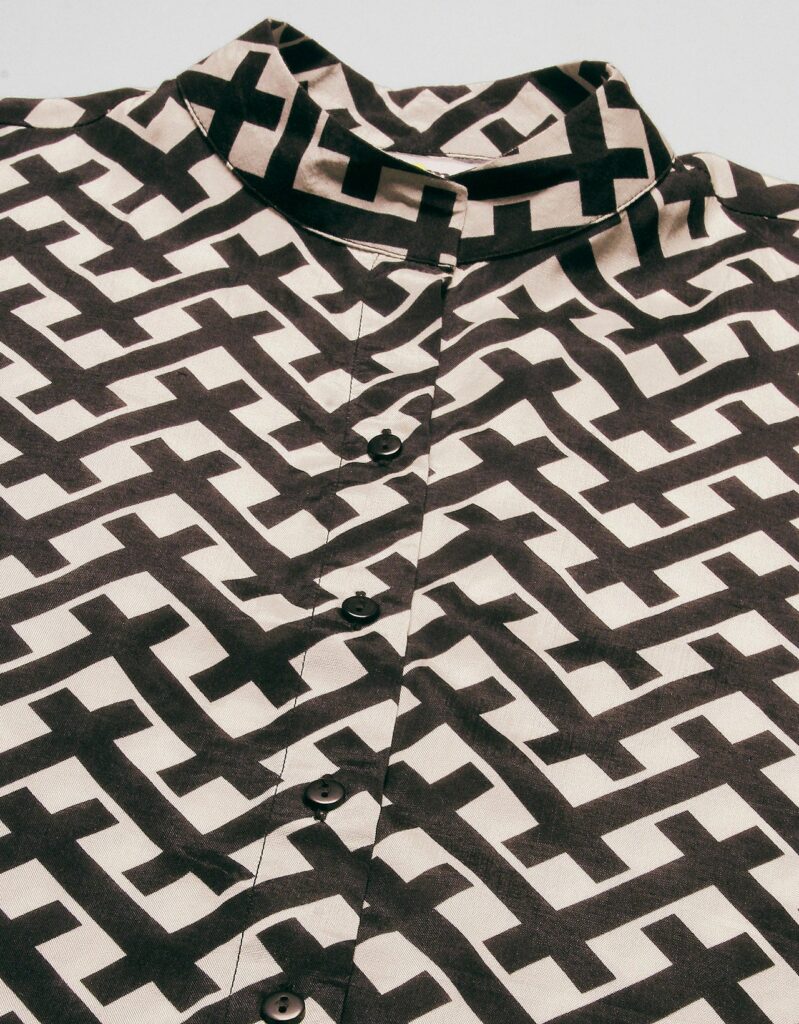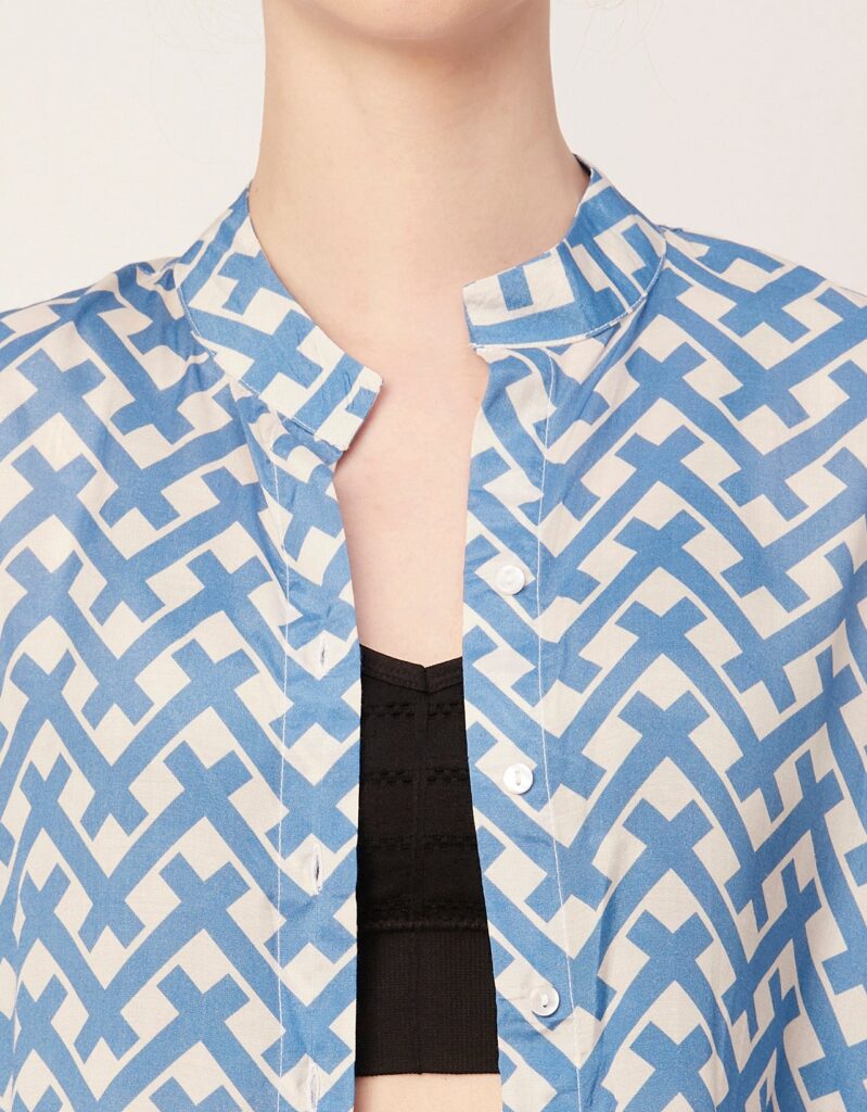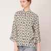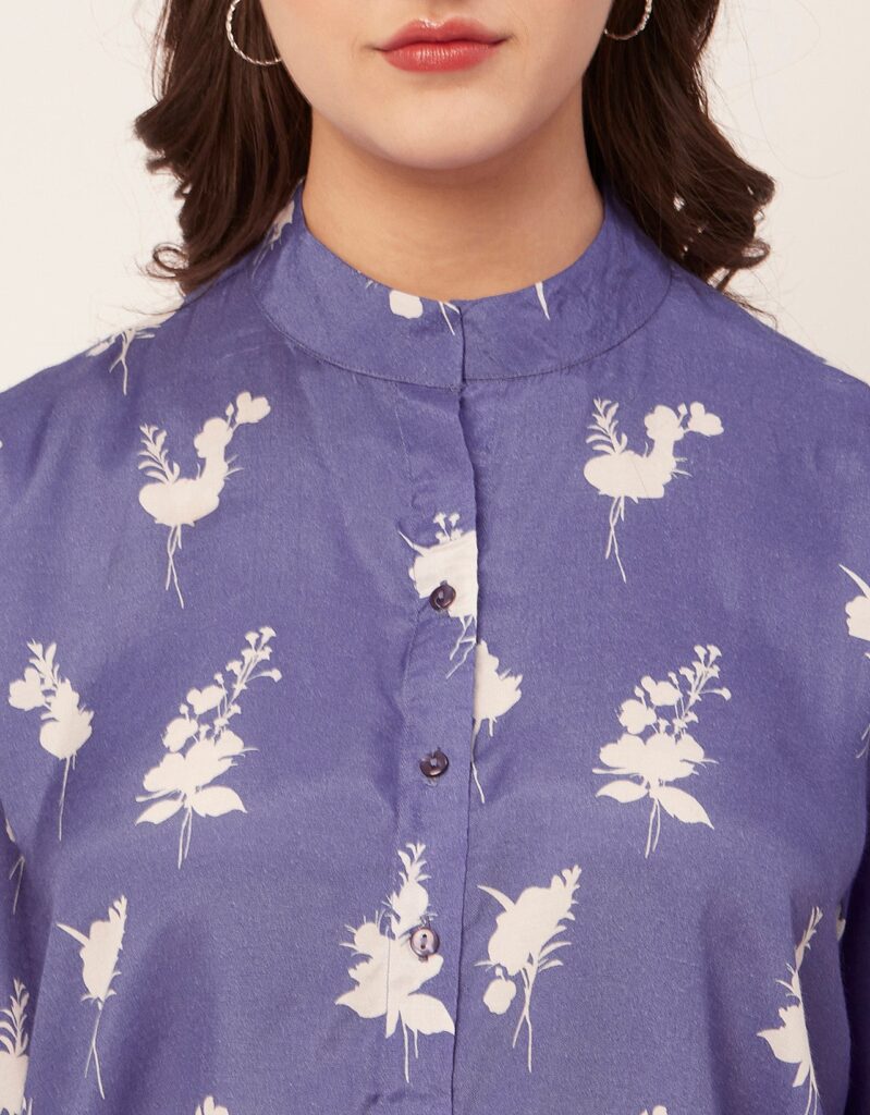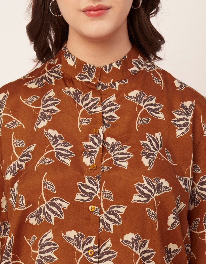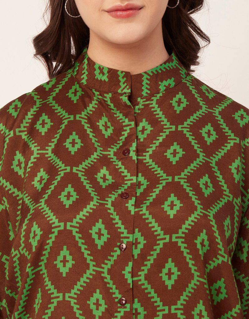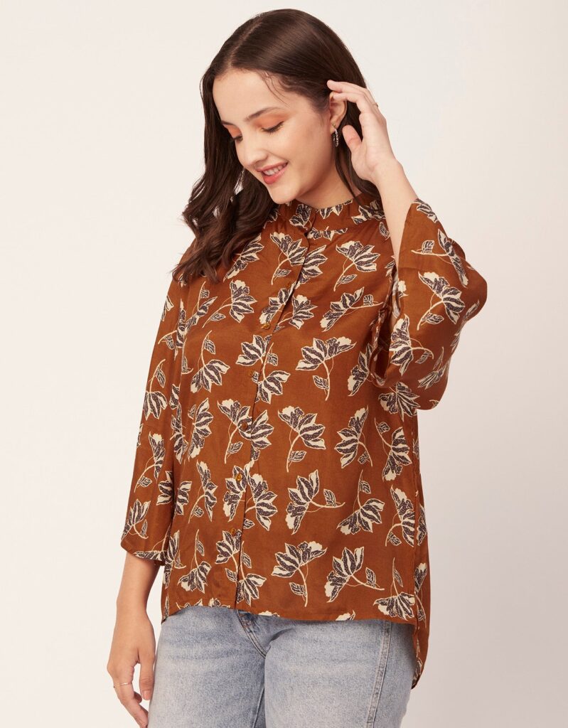 Tags: Oversize Shirt For Women, Summer Tops, Loose Fit Shirt, Mandarin Collar Shirt For Women, Printed Casual Shirt, Button Down Shirt, Long Bell Sleeve Top