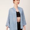 Features: Front Buttoned, Long Bell Sleeves, Collared Neck, Regular Sized, Light Weighted And All Over Printed Pattern