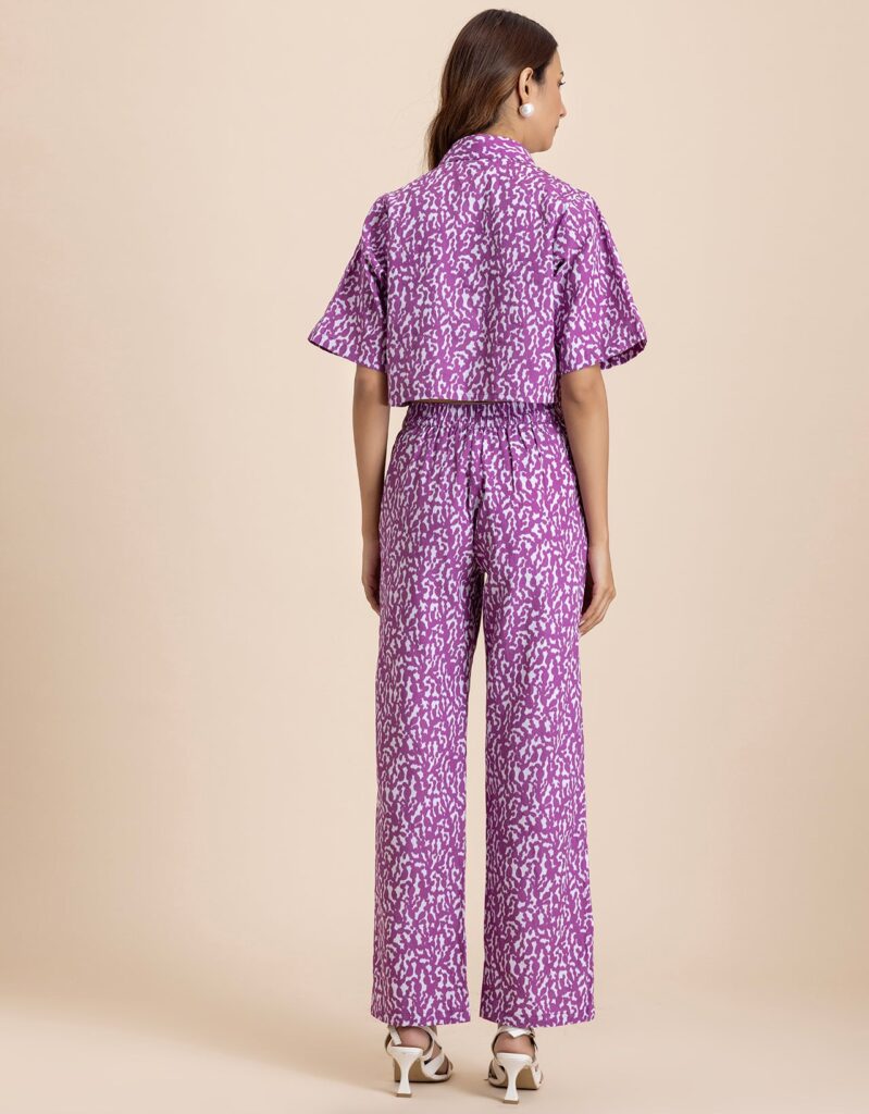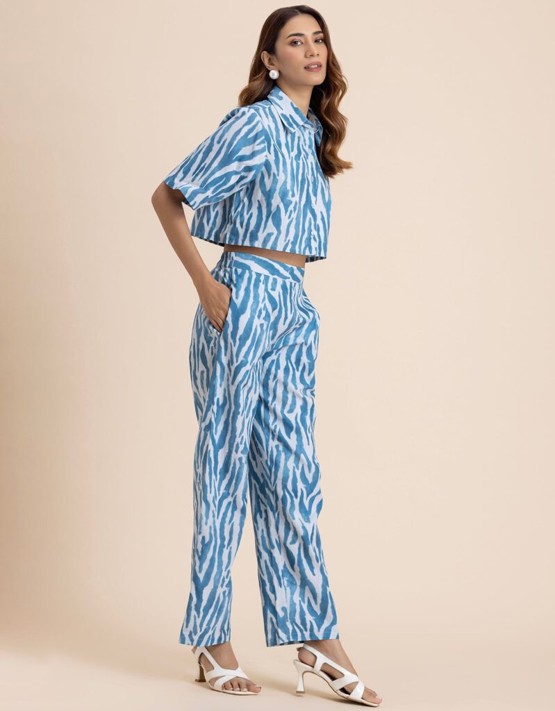 Printed 2 Pcs Co-Ord Set, Crop Shirt With Pantsshop