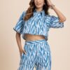 Printed 2 Pcs Co-Ord Set, Crop Shirt With Pants