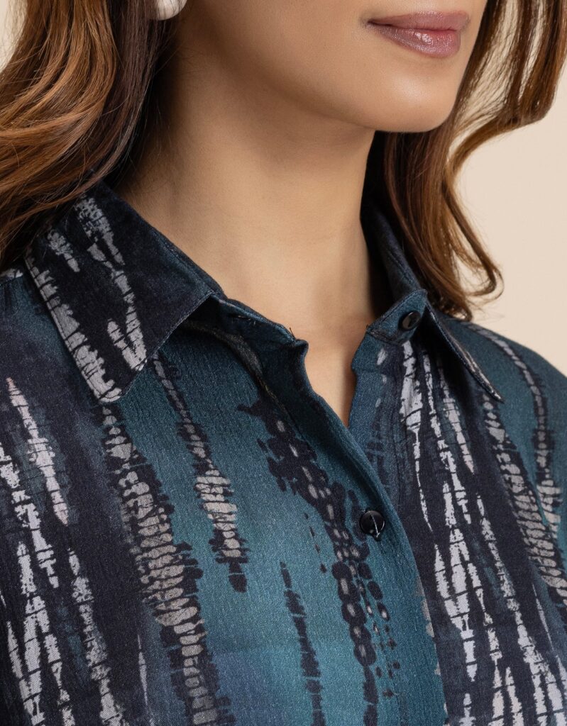 Features: Full sleeves, includes two pockets in trouser, classic collar, concealed zipper, plastic button, lightweight, relaxed fit and all over printed pattern.
