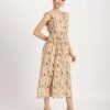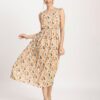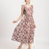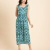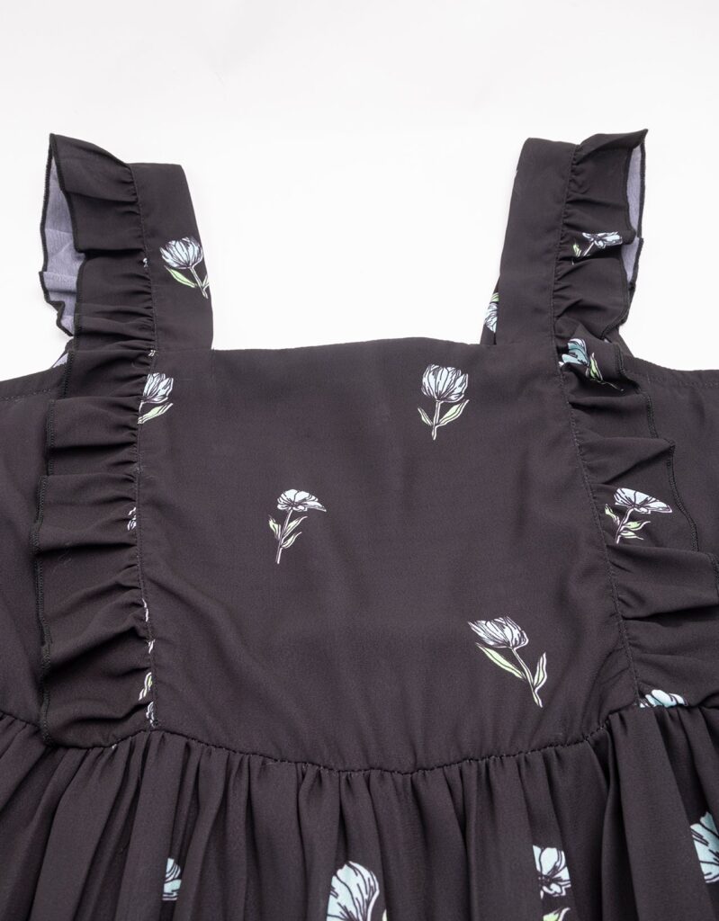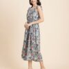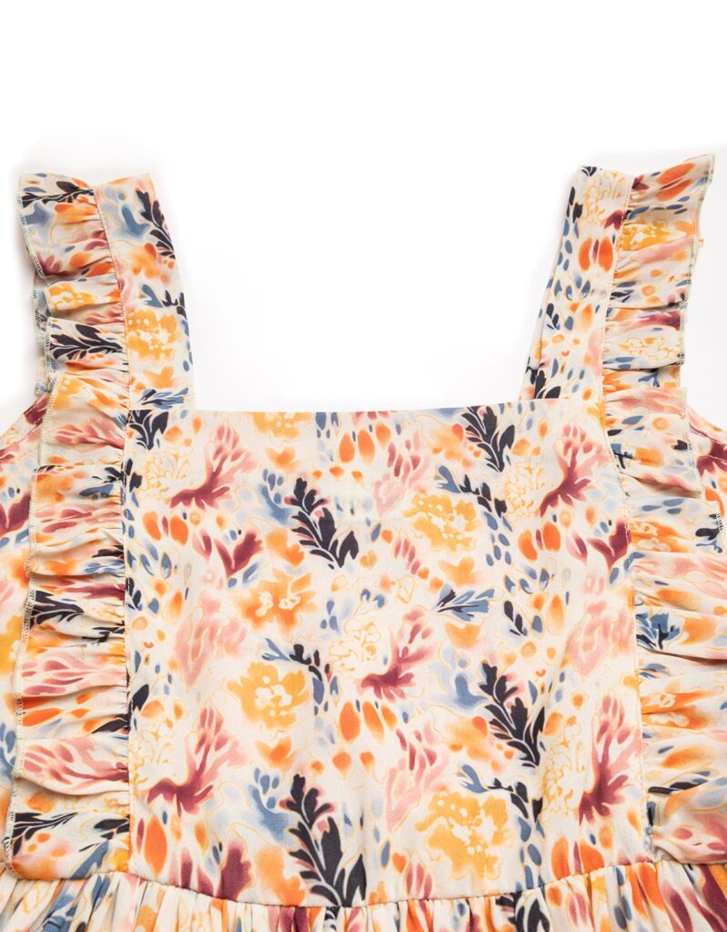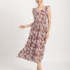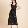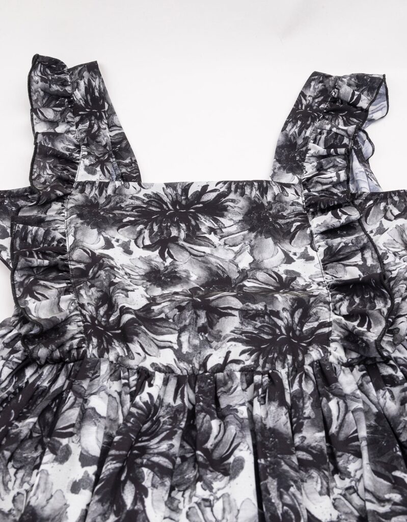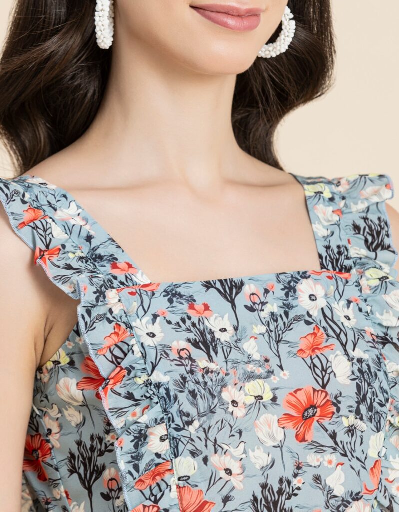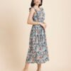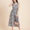 Features: Sleeveless, Ruffled, Square Neck, Ankle Length, A-Line, Lightweight And All Over Printed Pattern