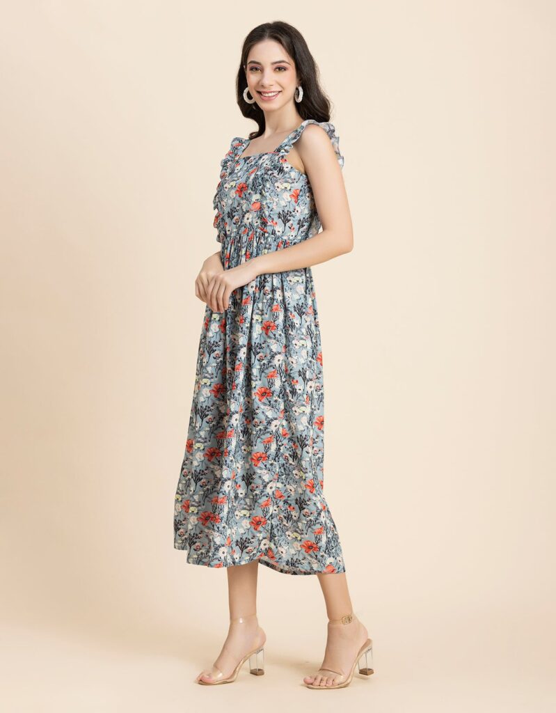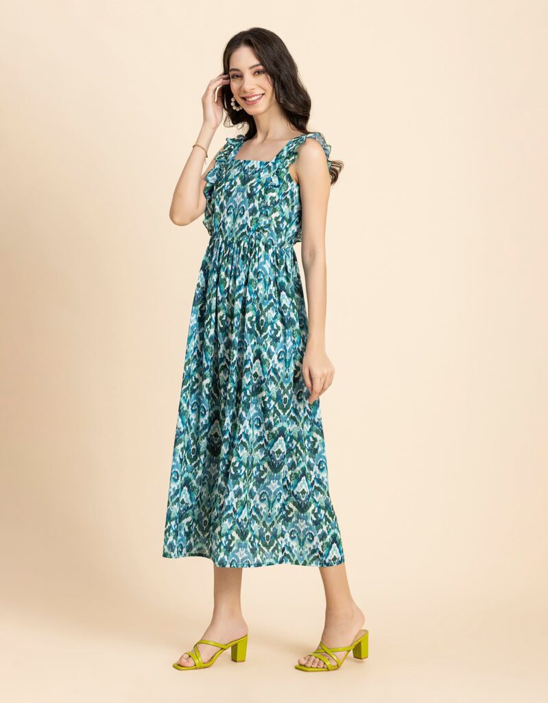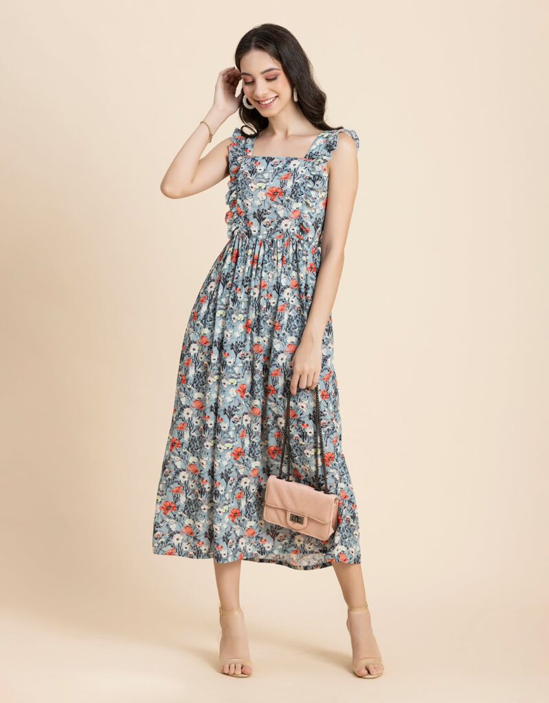 Tags: Maxi Dresses For Women, Sleeveless Dresses For Women, Summer Dresses For Women, Square Neck Long Dress, A-Line Dresses For Women, Ruffled Long Dresses For Women