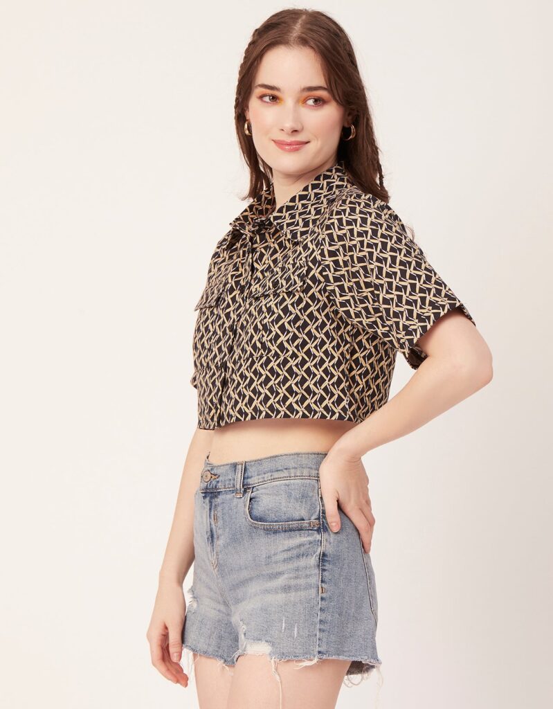 Printed Collared Crop Top