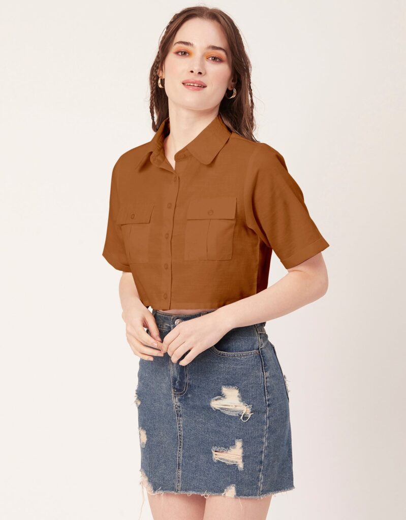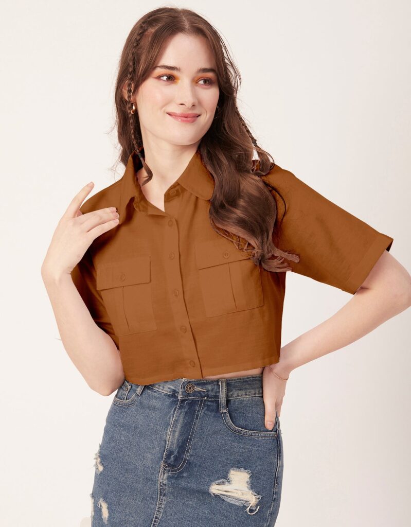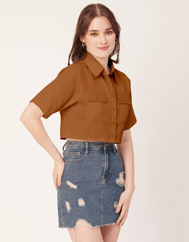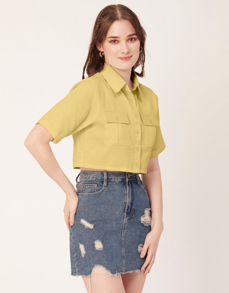 Tags: Crop Shirts For Women, Short Shirts For Women, Short Sleeves Tops For Women, Casual Shirts For Women, Shirt With Pockets For Women, Women?s Summer Clothing. Boxy Top, Cropped Shirt Top