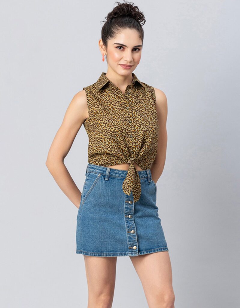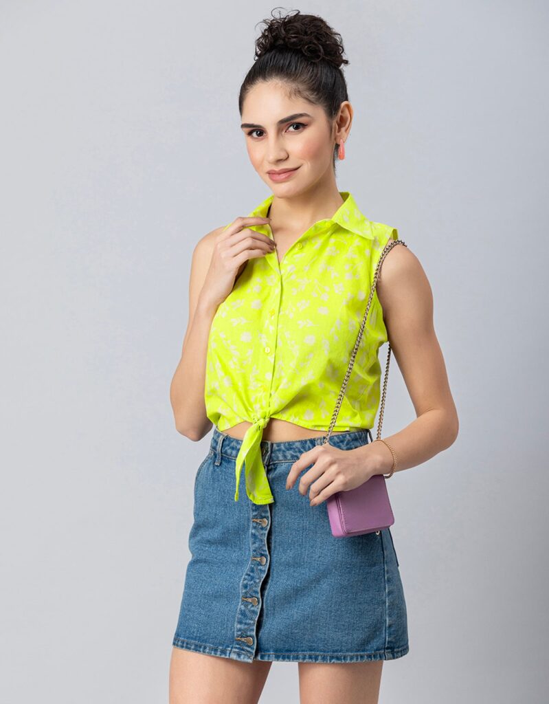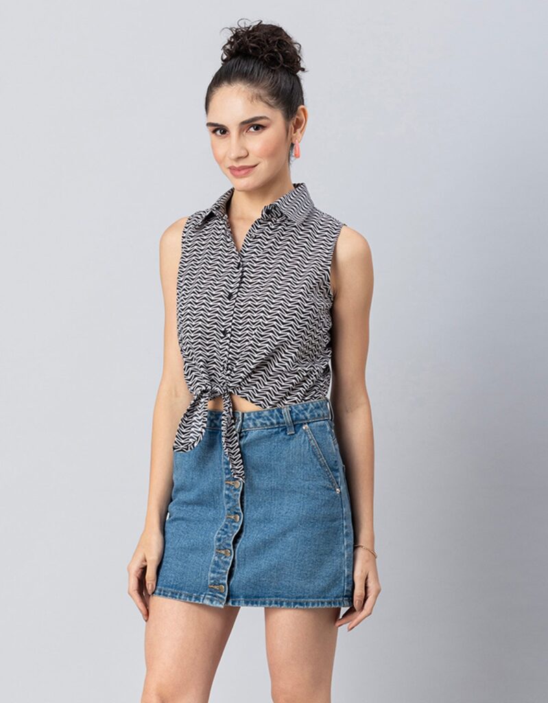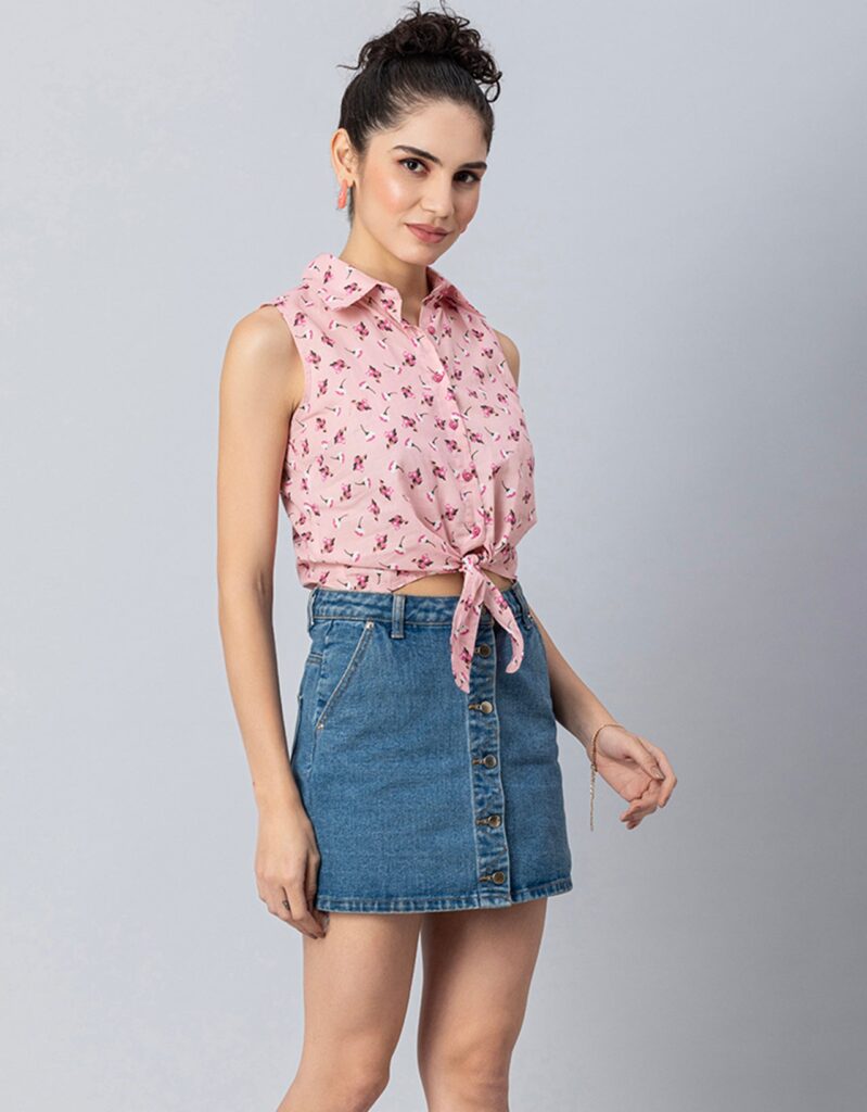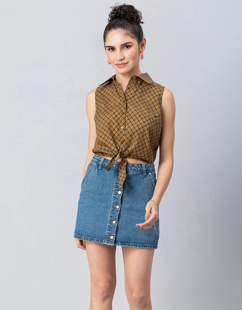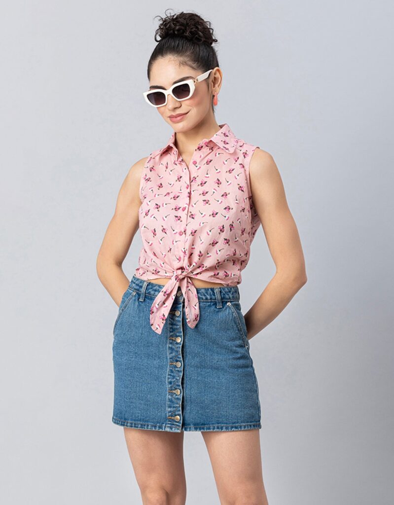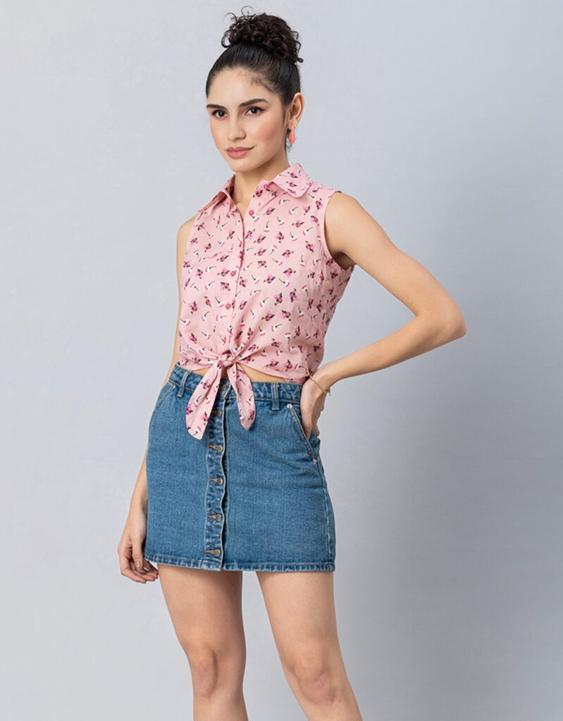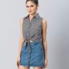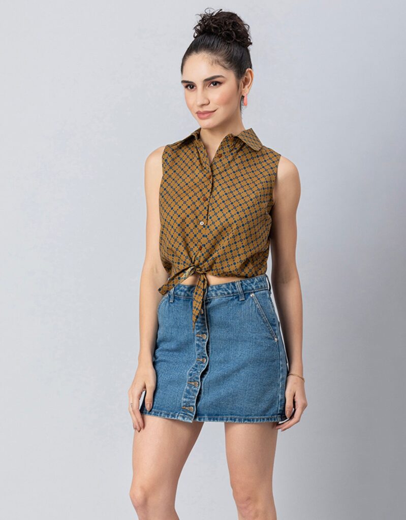 Tags: Crop Shirts For Women, Sleeveless Shirts For Women, Knotting Shirts For Women, Collared Crop Shirts For Women, Western Blouses For Women, Summer Shirts For Women