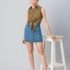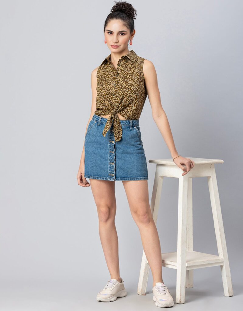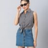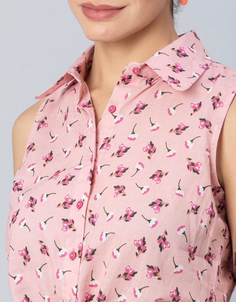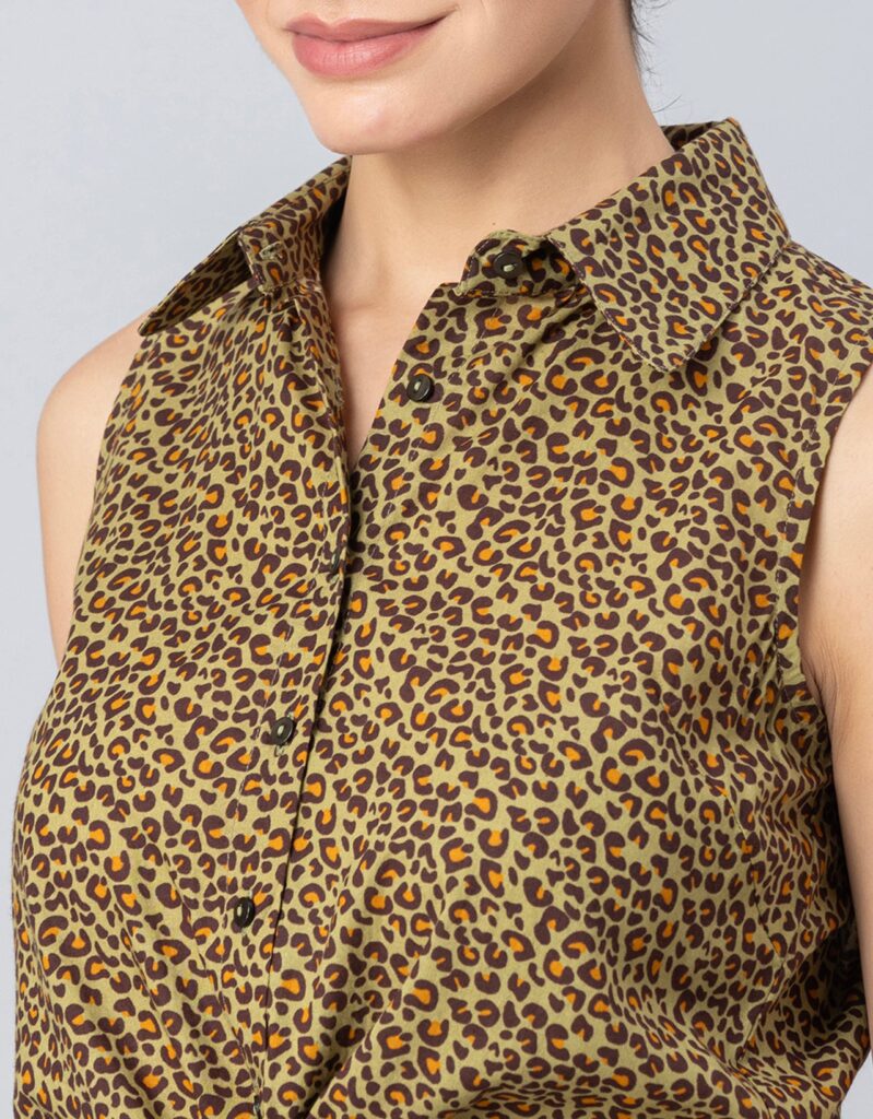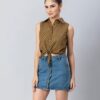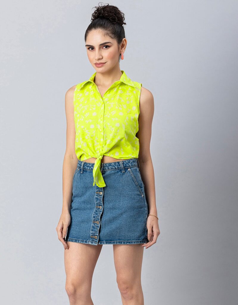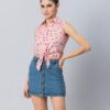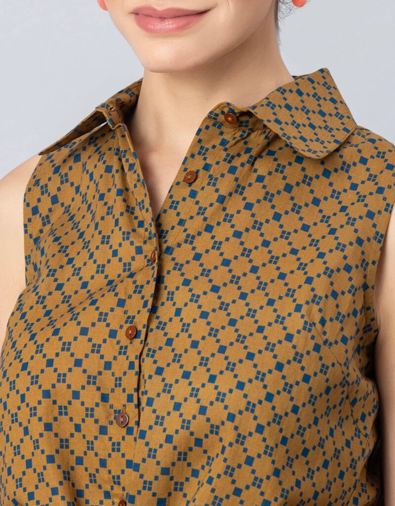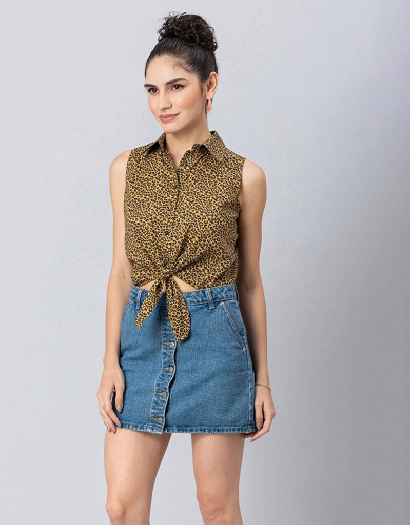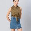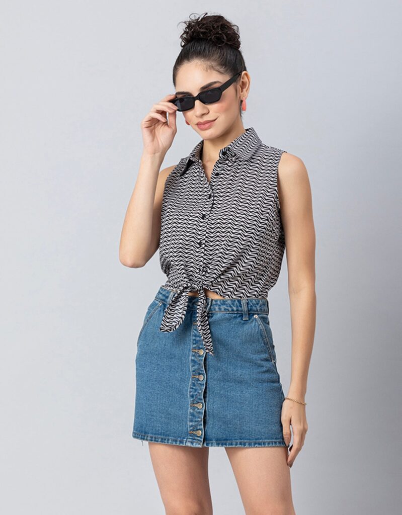 Tags: Crop Shirts For Women, Sleeveless Shirts For Women, Knotting Shirts For Women, Collared Crop Shirts For Women, Western Blouses For Women, Summer Shirts For Women