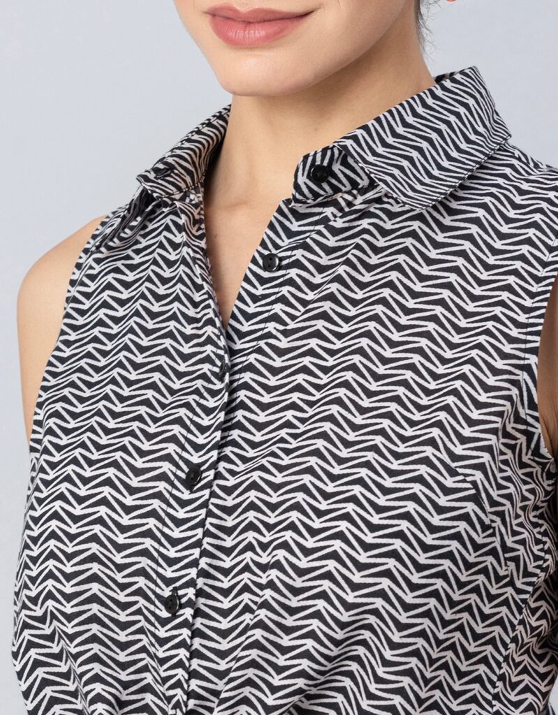 Features: Button Down, Sleeveless, Knotted, Cropped Length, Lightweight And All Over Printed Pattern