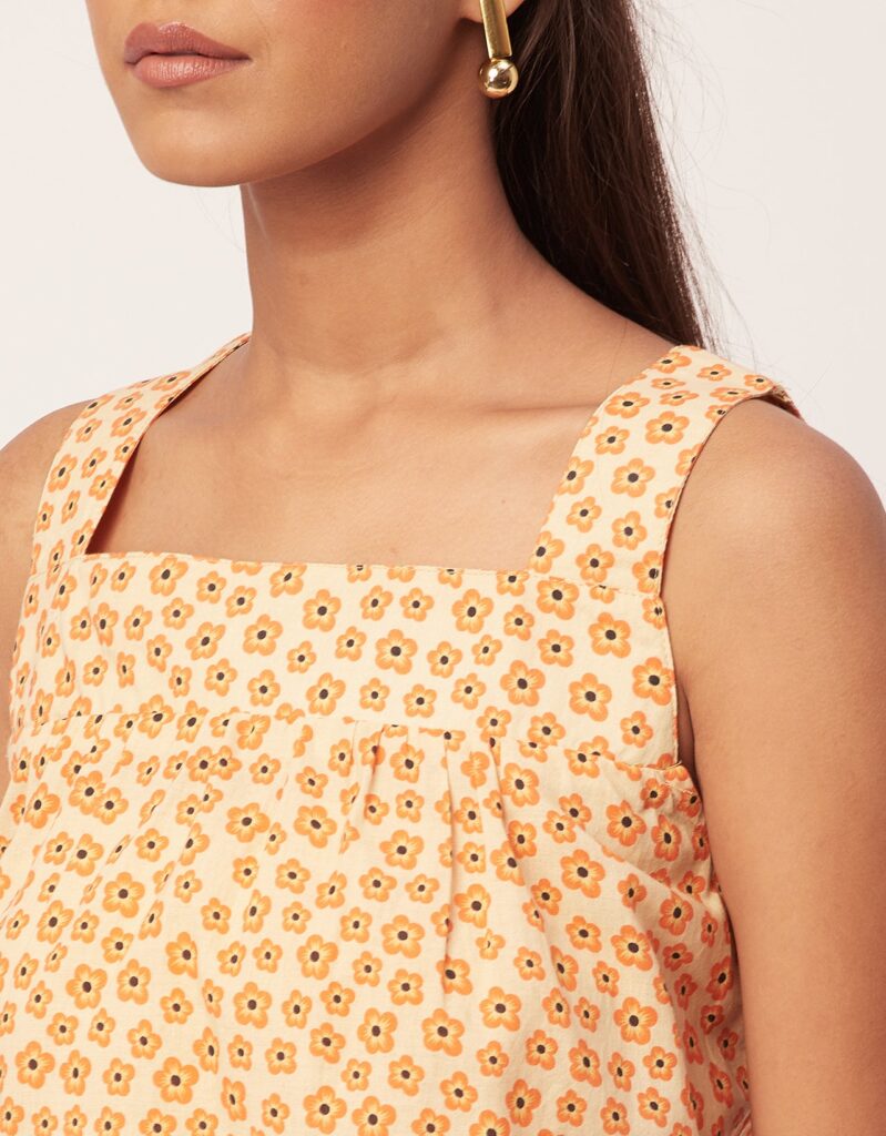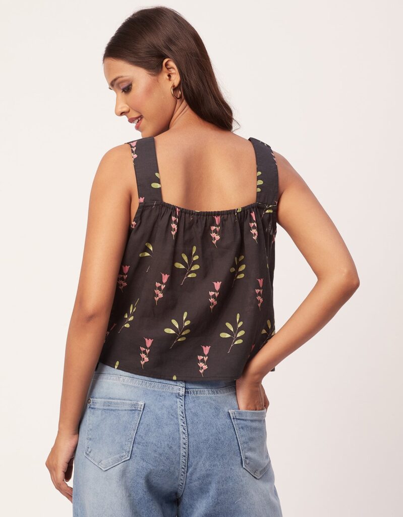 Features: Sleeveless, Cropped Length, Shoulder Straps, Square Neck, Lightweight And All Over Printed Pattern