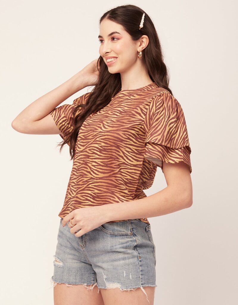 Printed Flutter Sleeve Top
