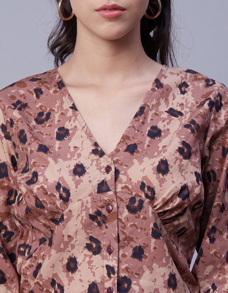 Features: Long Sleeves, V Neck, Cropped Length, Front Buttoned For Styling, Lightweight And All Over Pattern