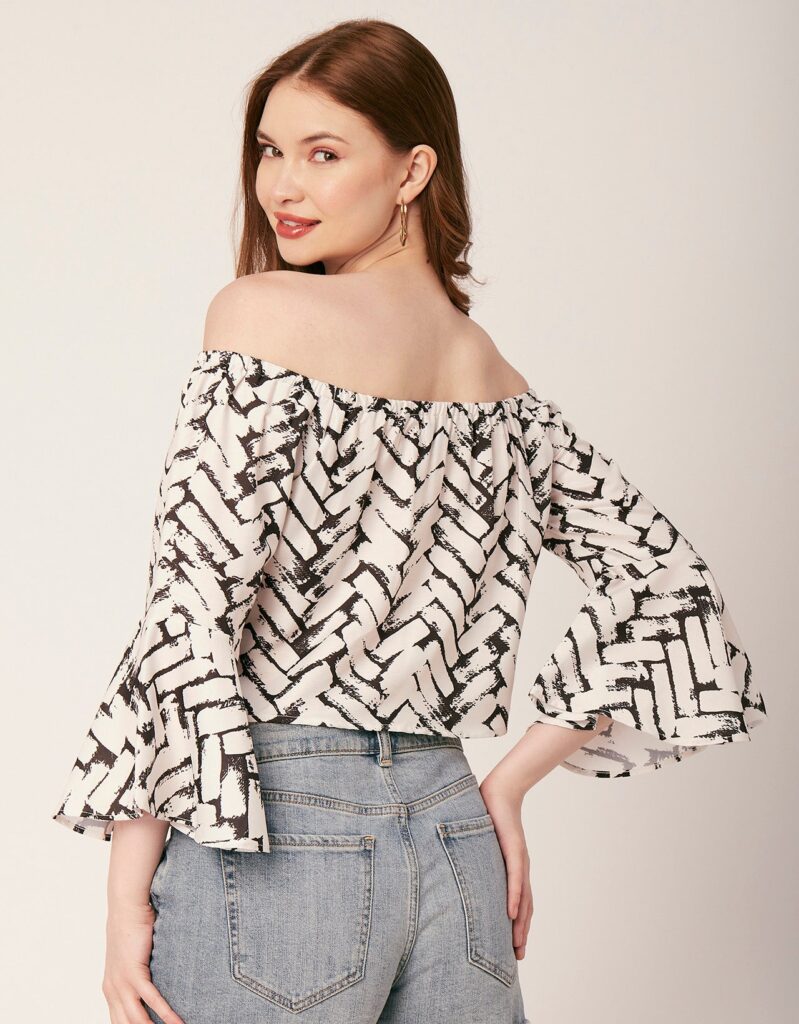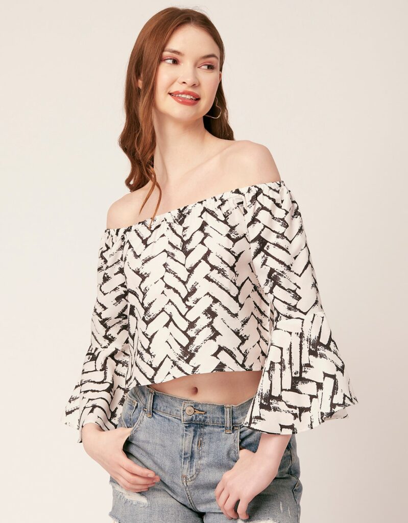 Tags: Printed Tops For Women, Women’S Off-Shoulder Top, Long Sleeve Crop Top, Casual Top Blouse, Flared Sleeve Tops, Summer Clothing, Resort Wear, Vacation Clothing, Off The Shoulder Top Blouse
