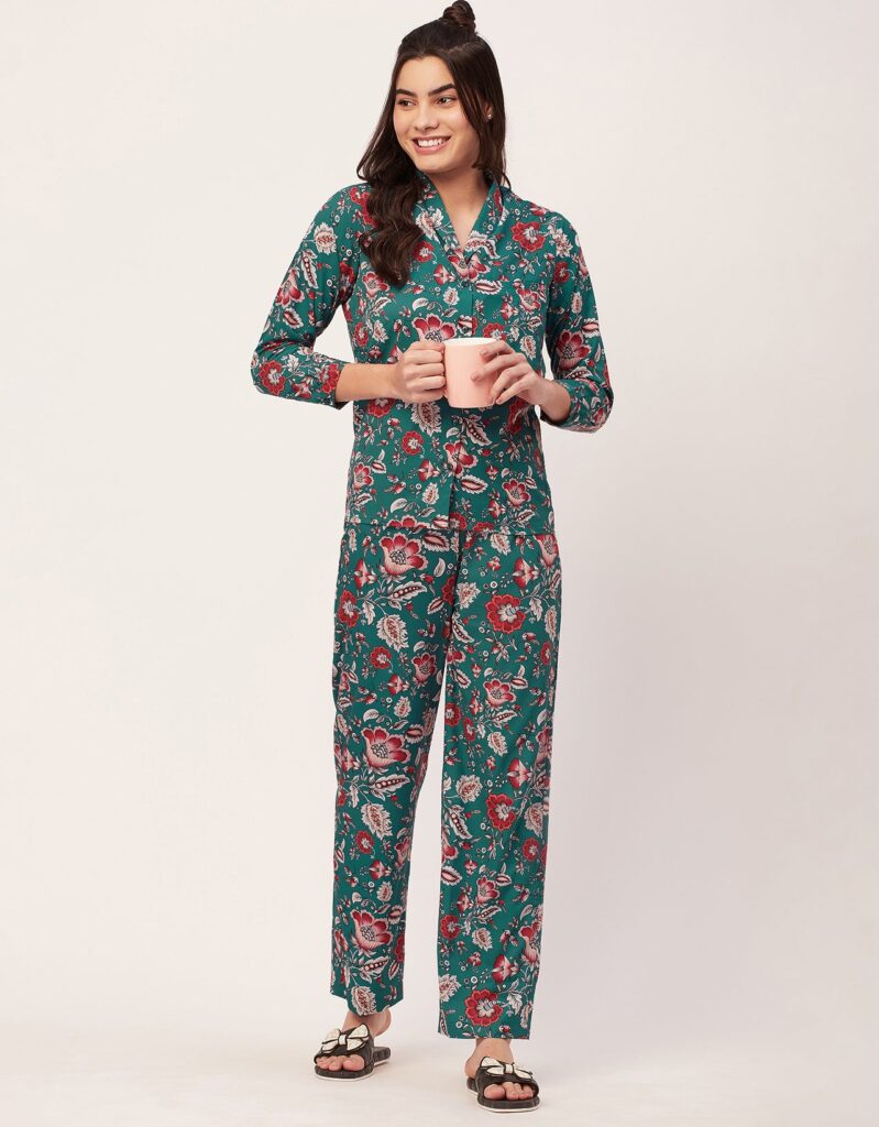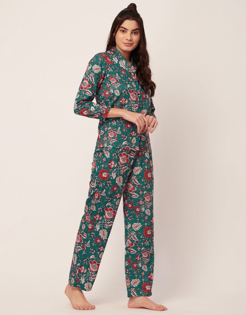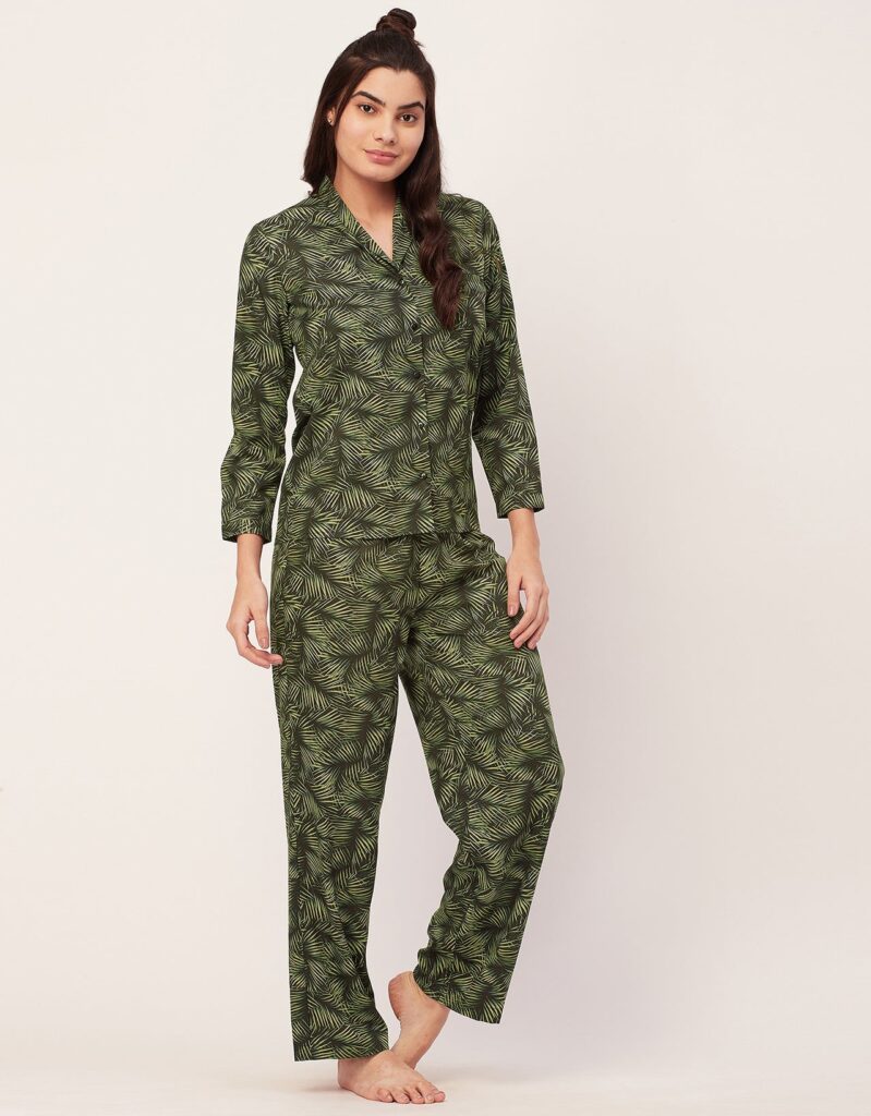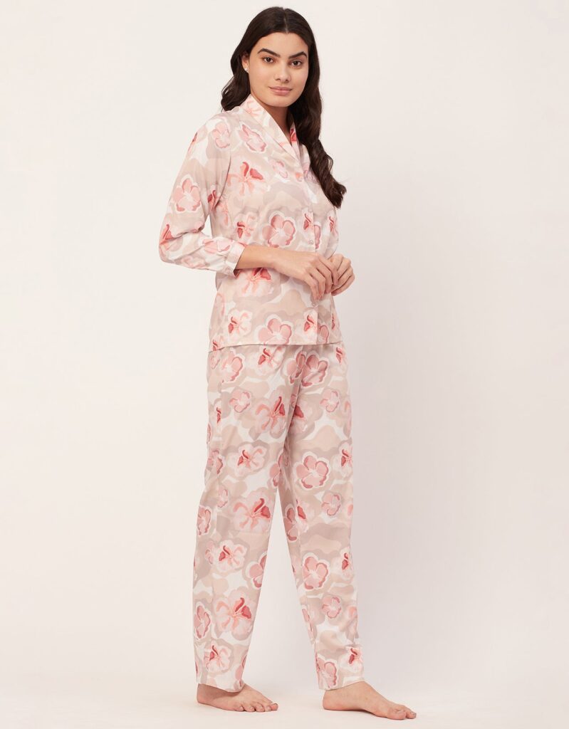 Features: Full Sleeve, Button-Down, Collared, Cuff Long Sleeve, Patch Pocket, Elastic Waist Pajama, All Over Printed Pattern, Soft Touch Fabric.