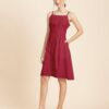 Features: Strap Shoulders, Round Neck, A-Line, Knee Length, Lightweight And Solid Pattern