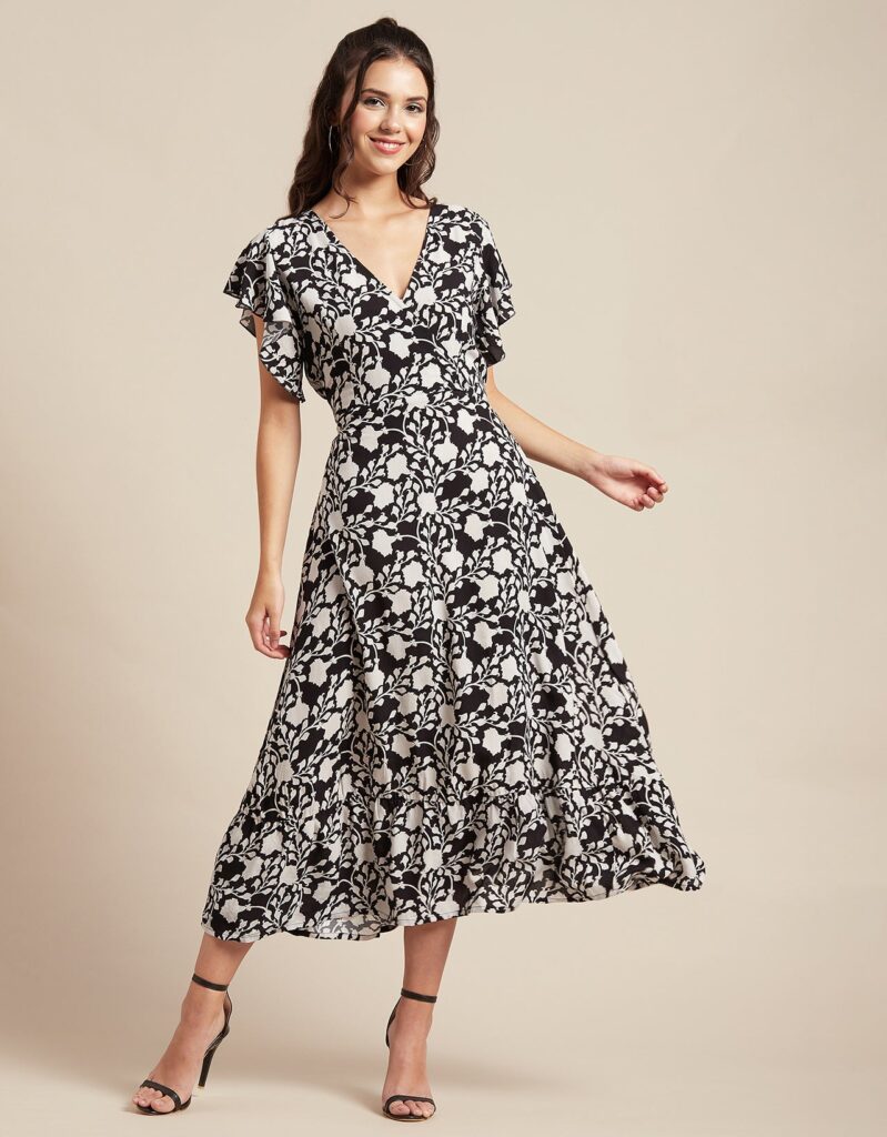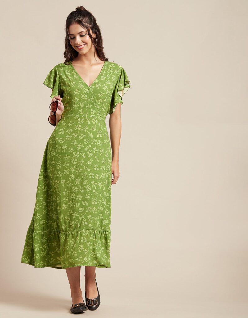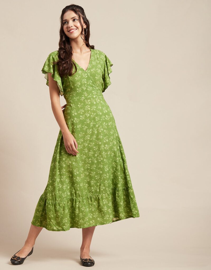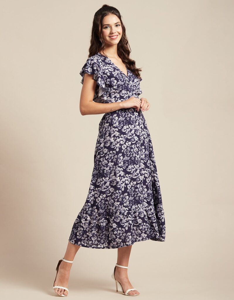 Tags: Printed Midi Dresses, Short Sleeves Dresses, V Neck Dresses, Ruffled Midi Dresses, Summer Midi Dresses, Printed Summer Dresses For Women