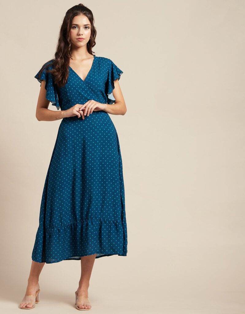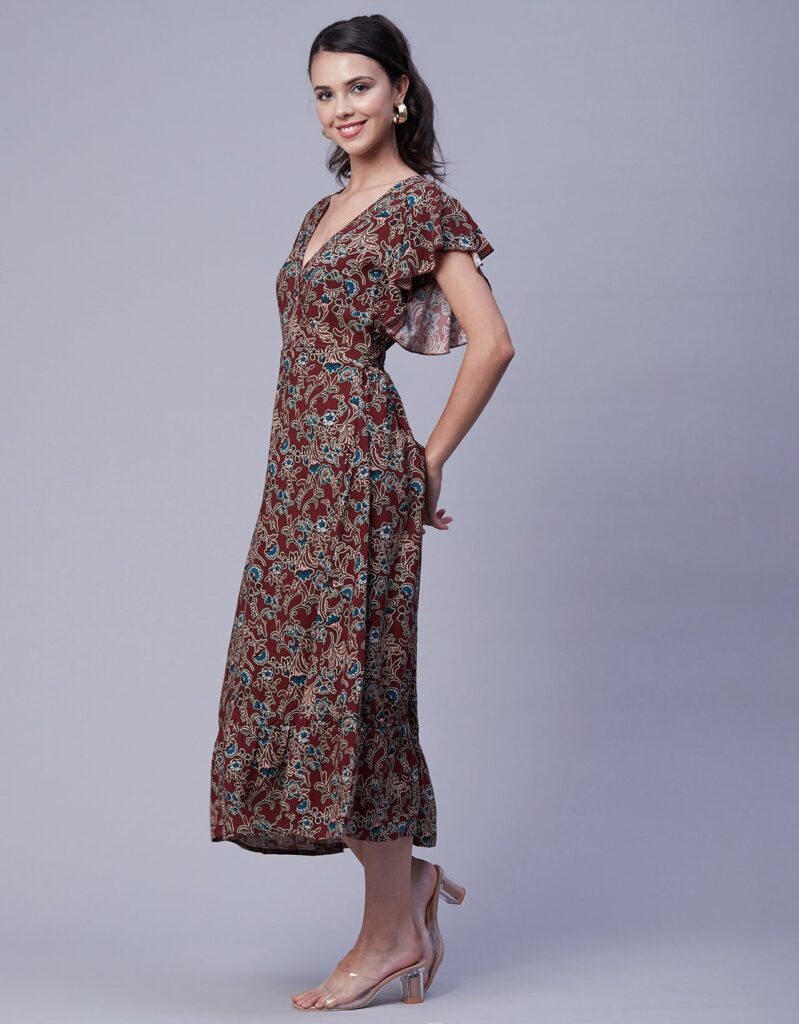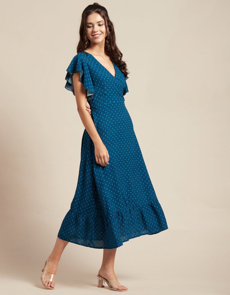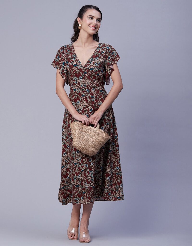 Tags: Printed Midi Dresses, Short Sleeves Dresses, V Neck Dresses, Ruffled Midi Dresses, Summer Midi Dresses, Printed Summer Dresses For Women