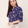 Features: Mandarin Collar With V Cut, Quarter Sleeve, Regular Length, Lightweight, All Over Solid Pattern.