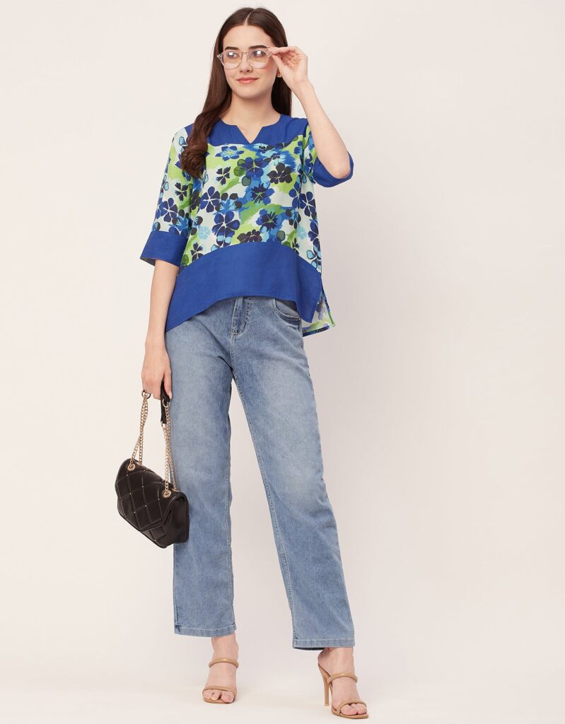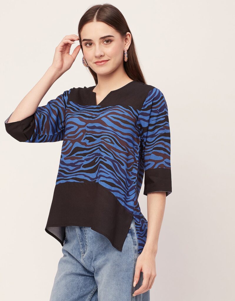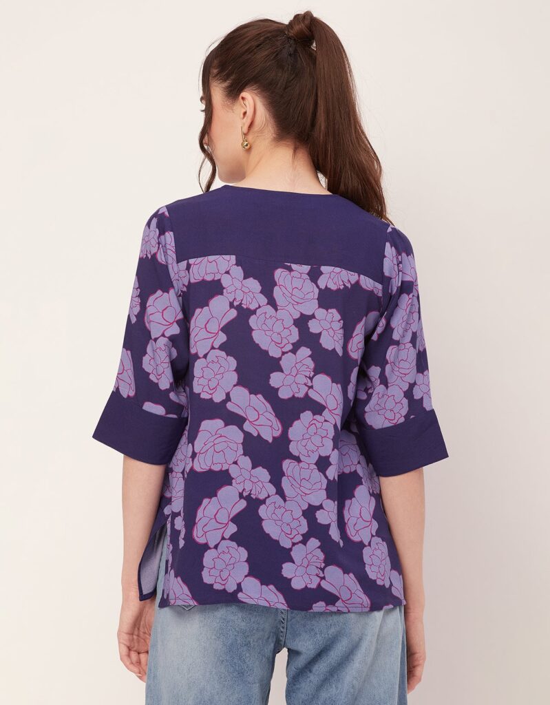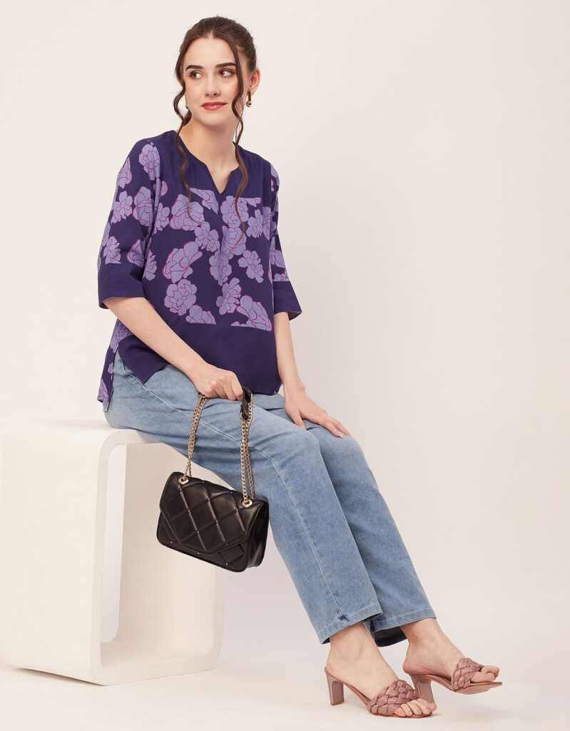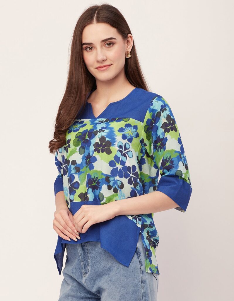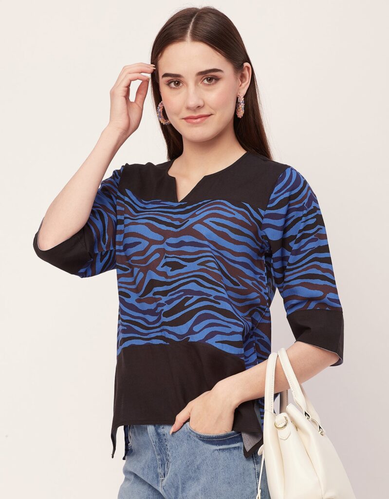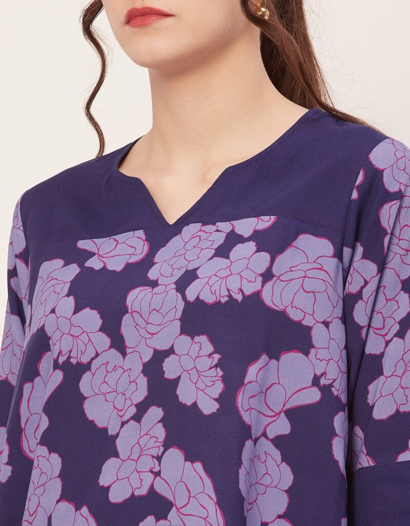 Features: Round Neck With V Cut, 3/4Th Sleeve, Tunic Length, Lightweight, All Over Printed Pattern.