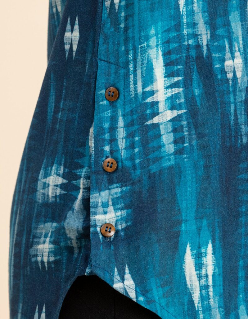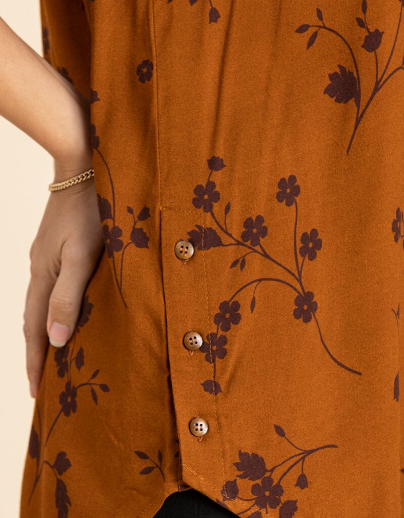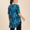 Features: Curved Hem, Button Placket, Side Buttoned, Round Neck, Long Length, Quarter Sleeves, Lightweight And All Over Printed Pattern