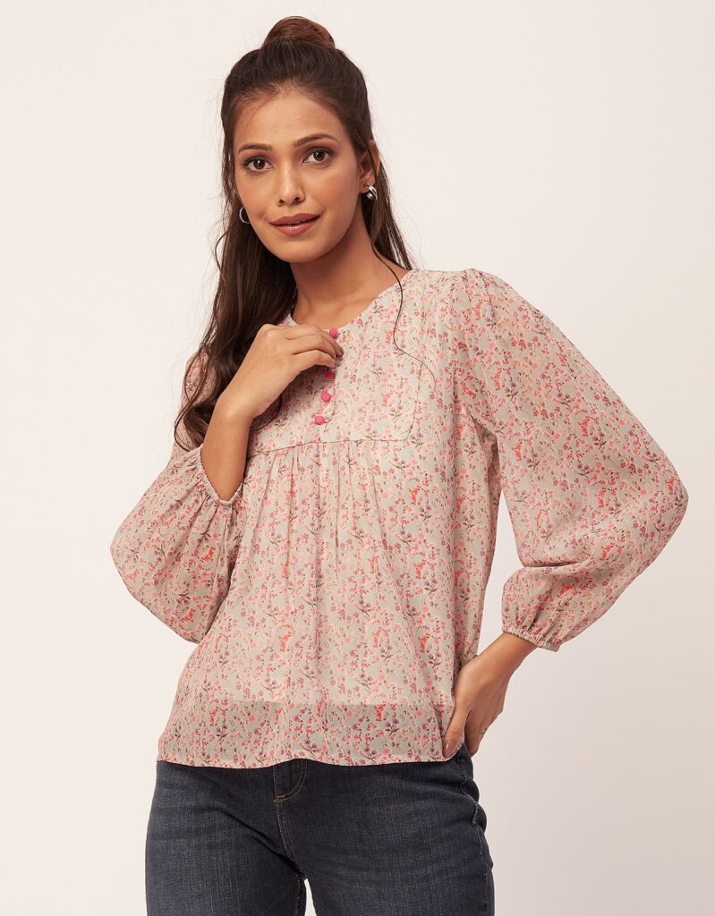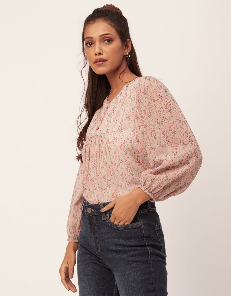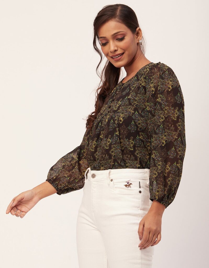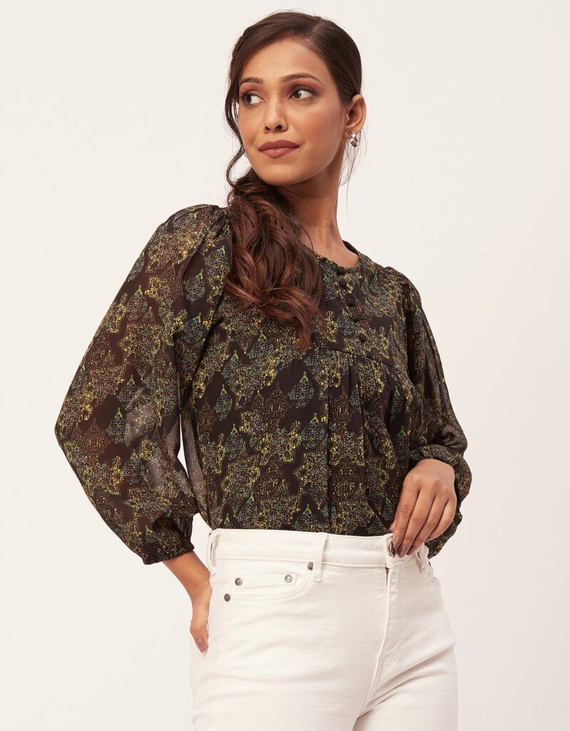 Tags: Printed Tops For Women, Regular Top, Puff Sleeve Top, Round Neck Tops, Long Sleeve Tops For Women, Casual Wear, Summer Tops, Tops For Women 2023