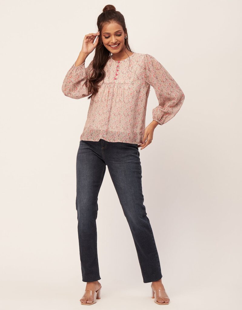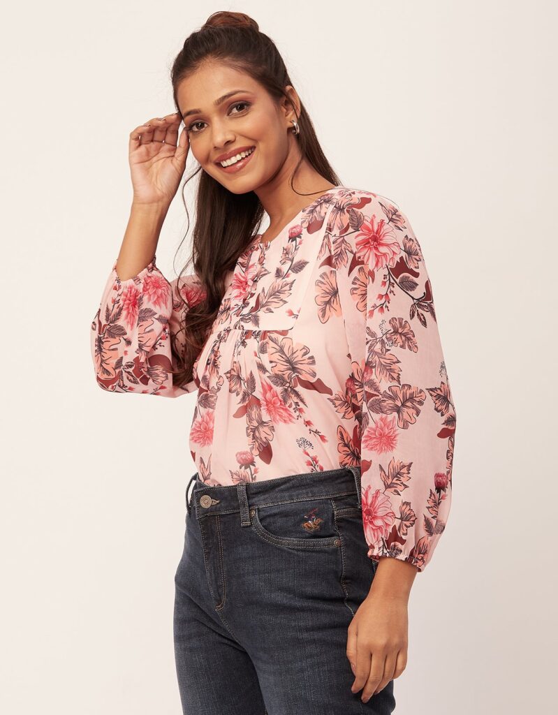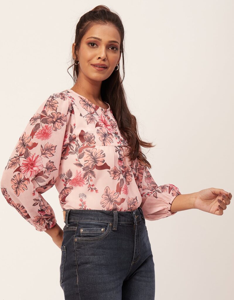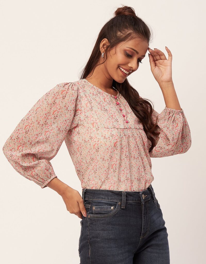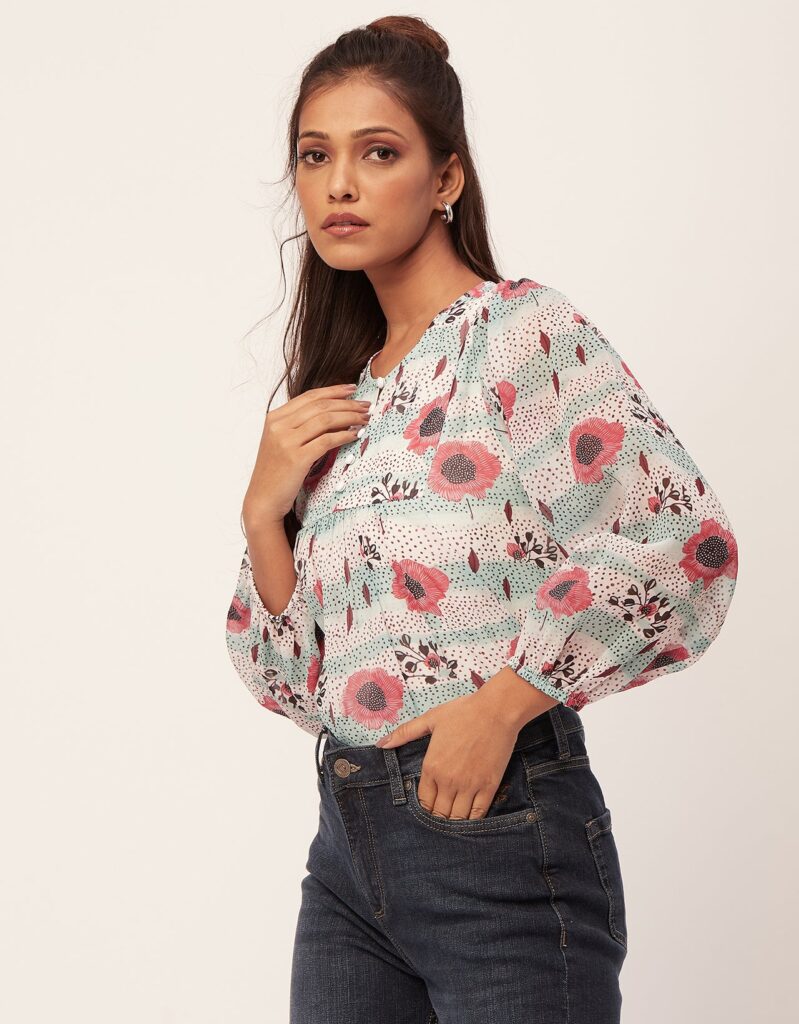 Tags: Printed Tops For Women, Regular Top, Puff Sleeve Top, Round Neck Tops, Long Sleeve Tops For Women, Casual Wear, Summer Tops, Tops For Women 2023