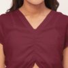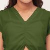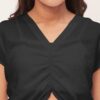Features: Short Sleeve, V-Neck, Crop Length, Lightweight, All Over Solid Pattern.