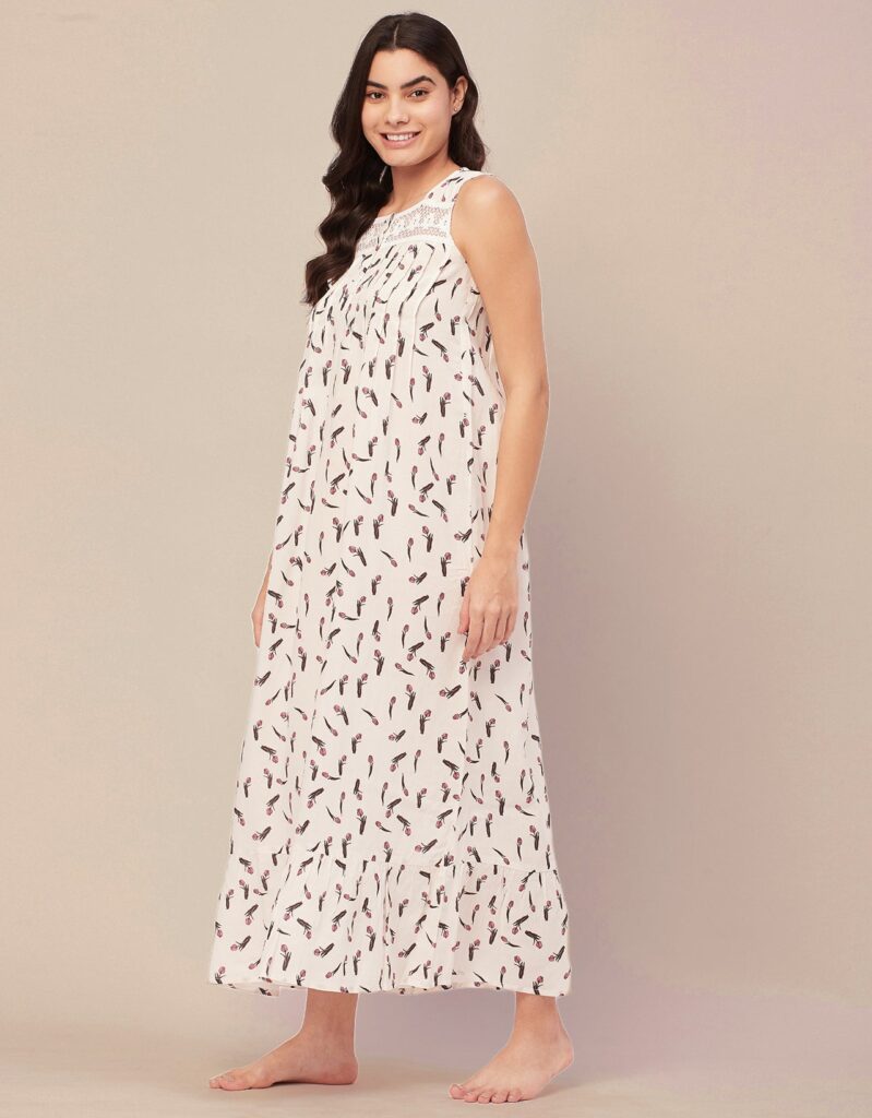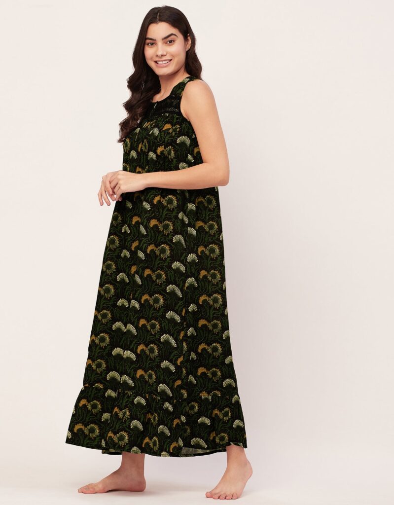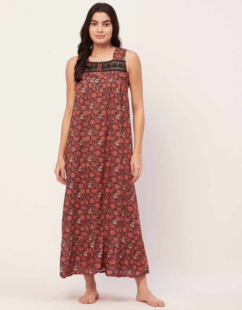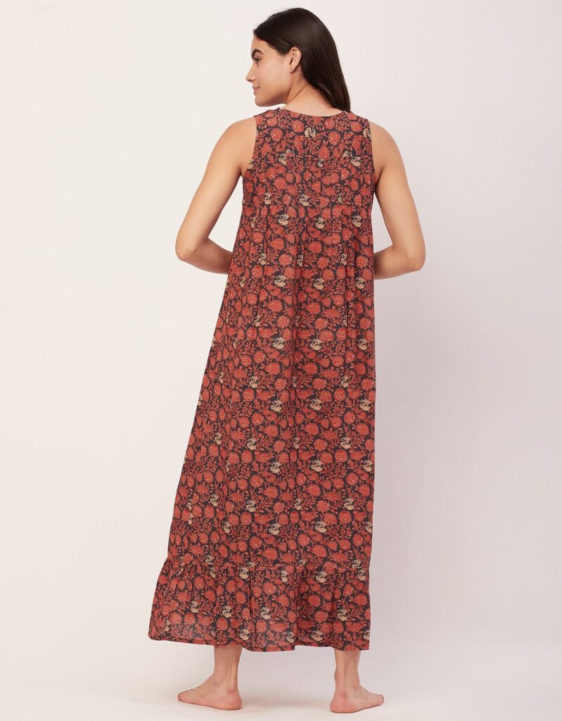 Tags: Printed Night Dress For Women, Sleeveless Nightgown, Long Sleep Dress For Women, Nightwear For Women, Long Maxi Dress, Printed Loungewear For Women