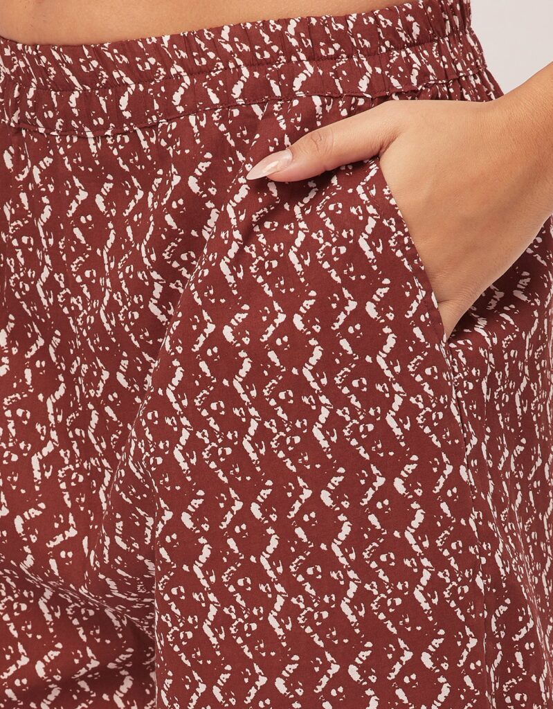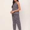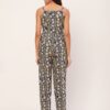 Features: Round Neck, Gathered Waist Top, Adjustable Spaghetti Strap, Sleeveless, Elastic Waist Pajama, All Over Printed Pattern.