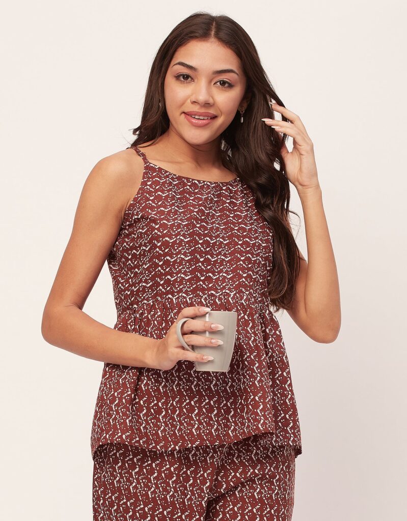 Tags: Sleeveless Nightwear For Women, Printed Sleepwear?S, Camisole & Pant Set, Frill Cami Nightwear Set, Printed Night Suit, Women Nightwear Set, Nightwear Set For Women, Sleepwear Set For Women, Sleepwear 2 Piece Set, Top Pajama Set