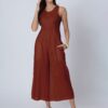 Sleeveless Printed Wide Leg Jumpsuit With Pockets For Women