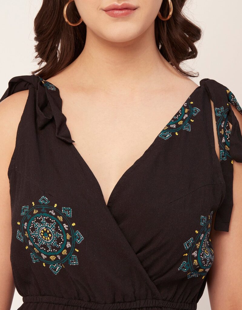 Features: Smocked Front, Sleeveless, V Neck, Ankle Length, One Side Tie-Up Lightweight And All Over Printed Pattern