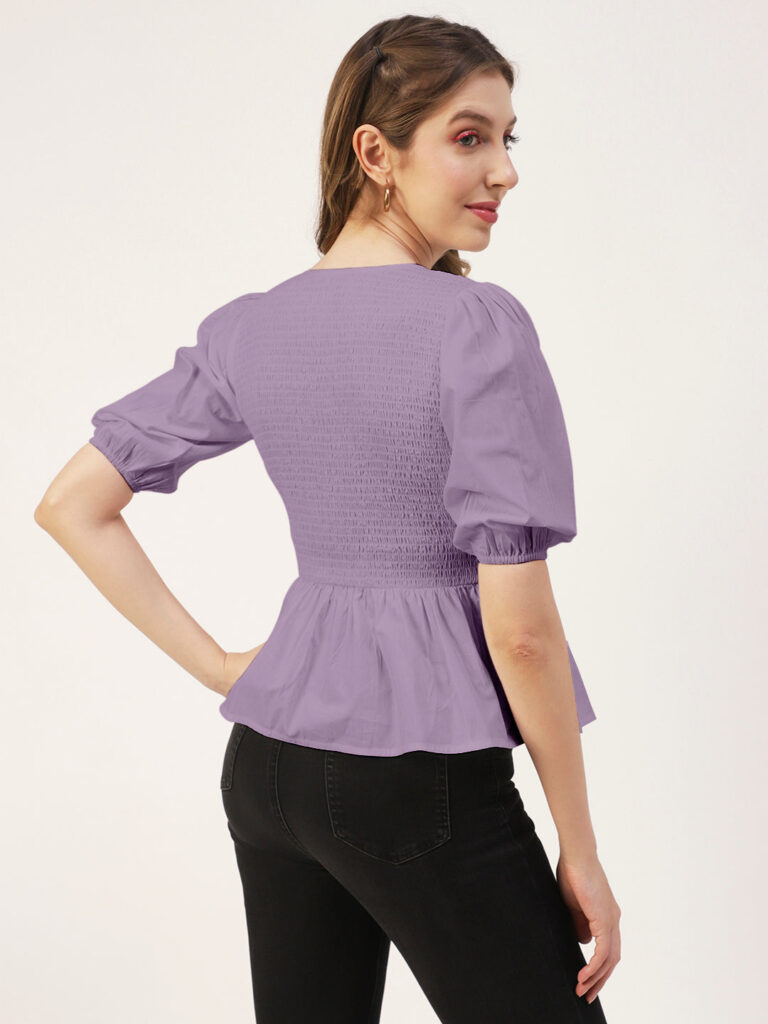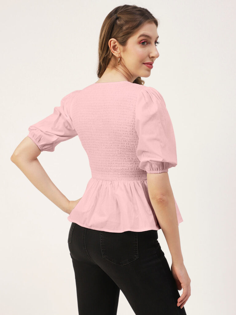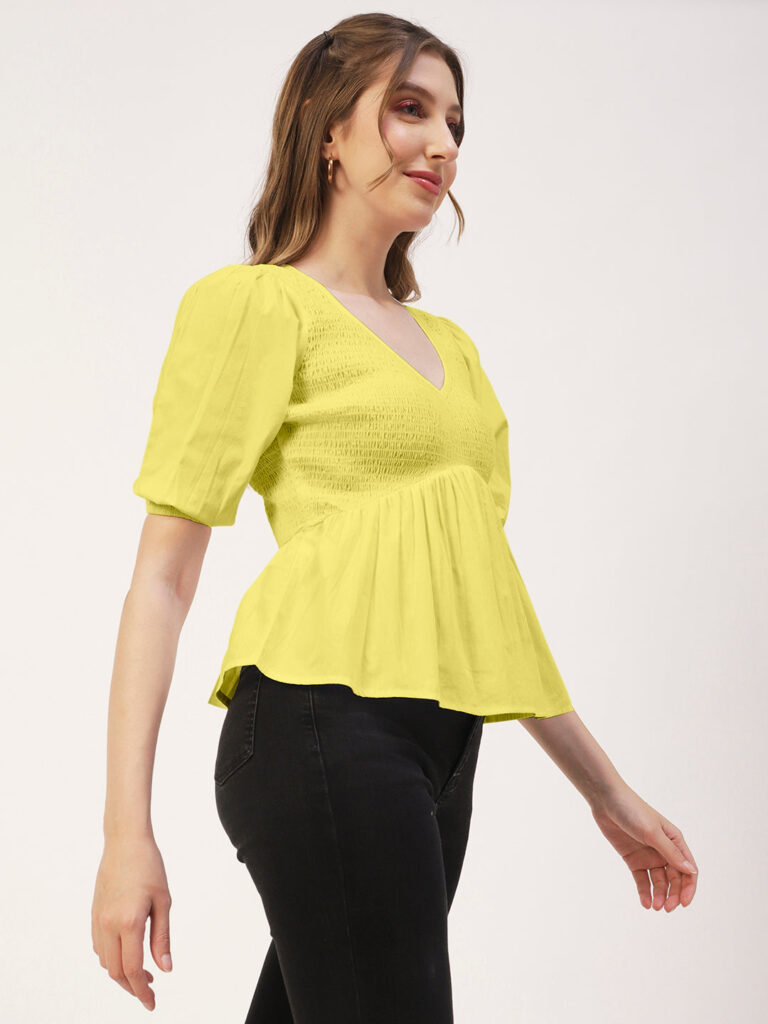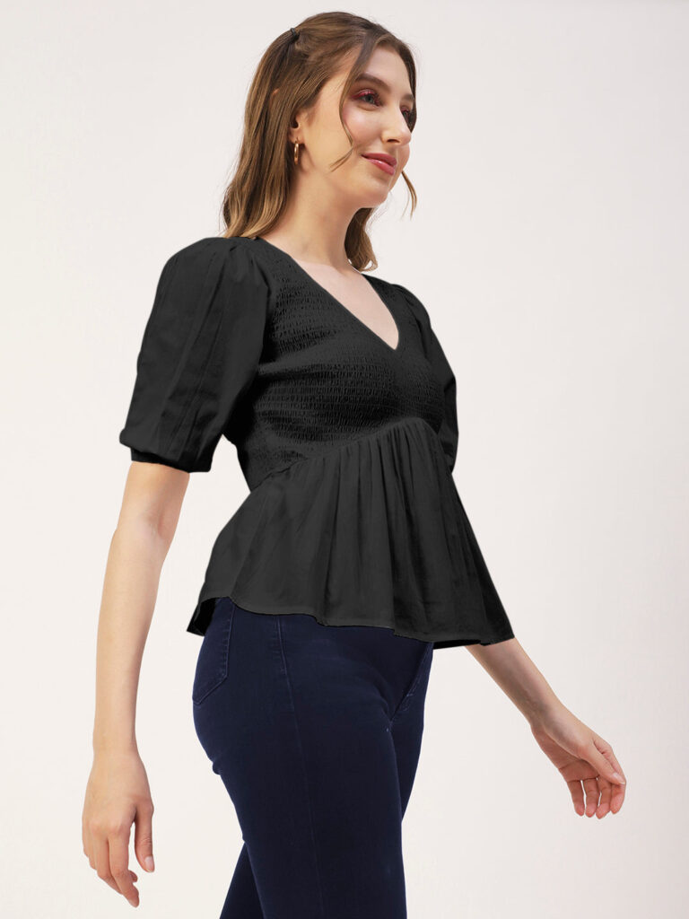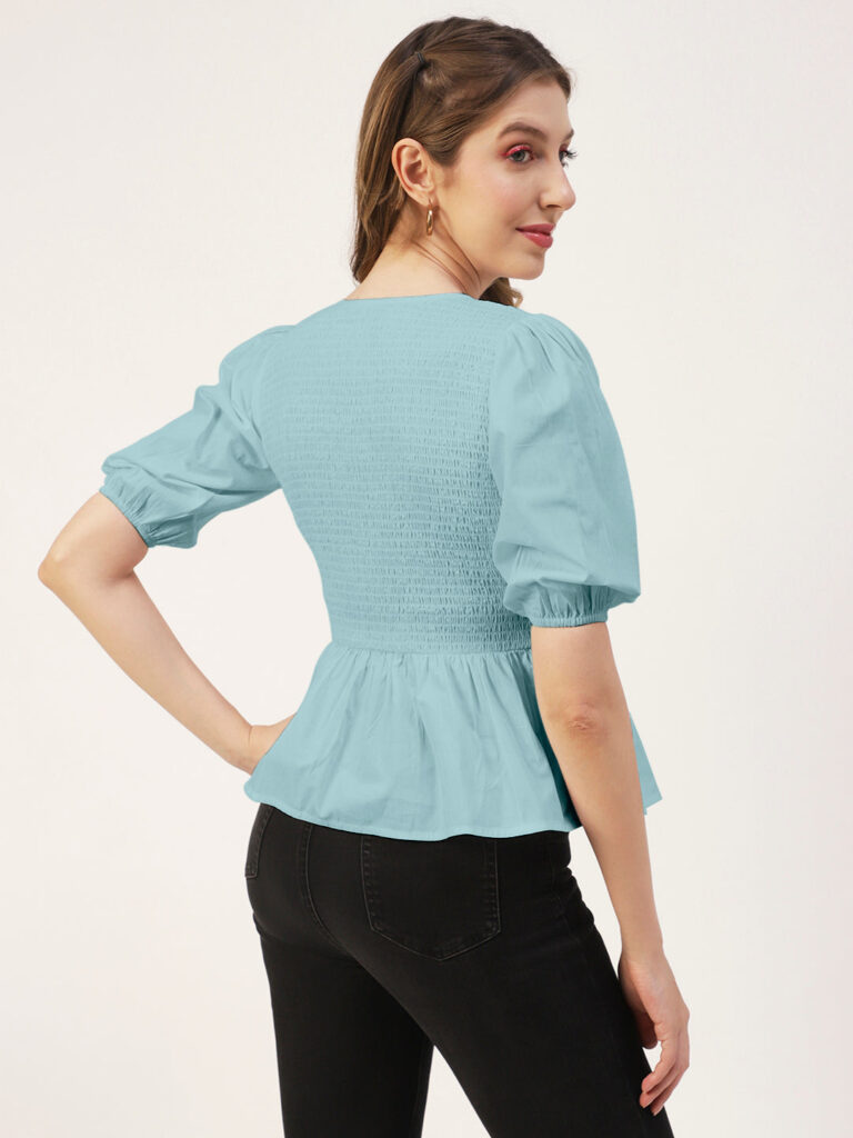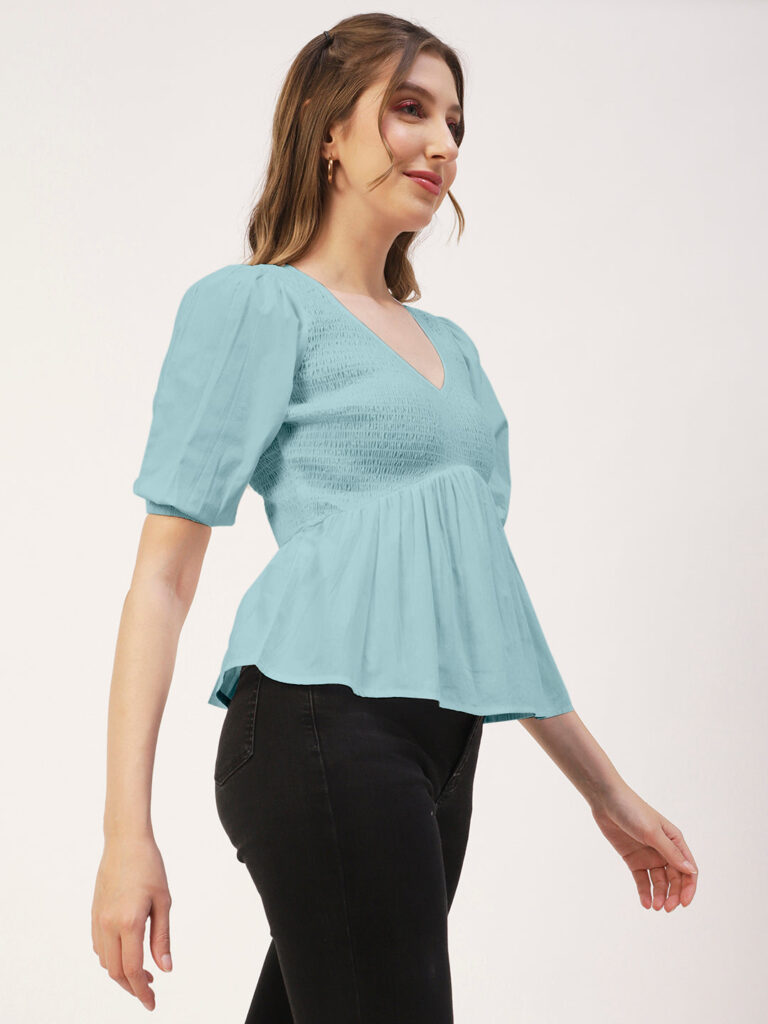 Smocked Elbow Sleeve Top