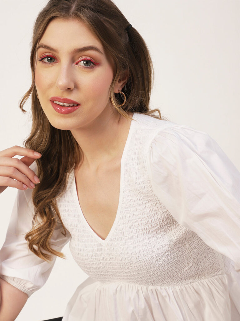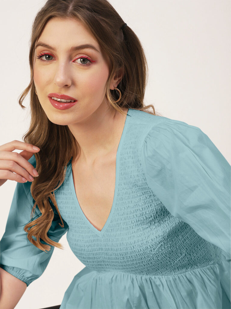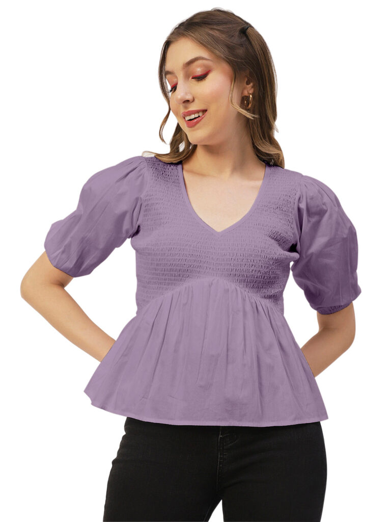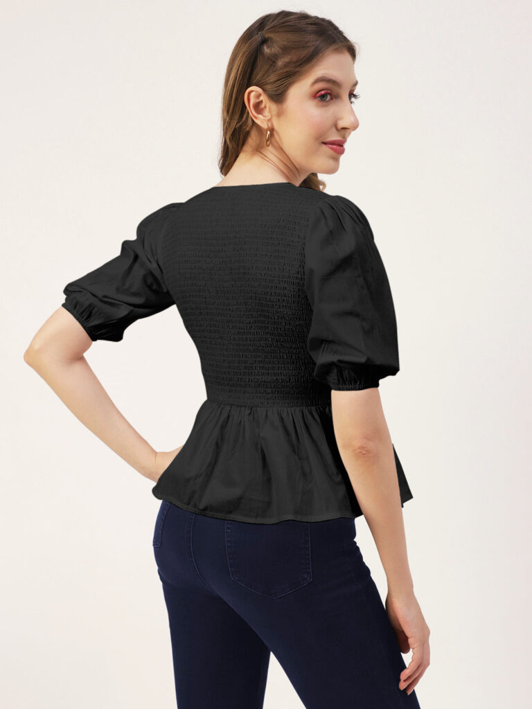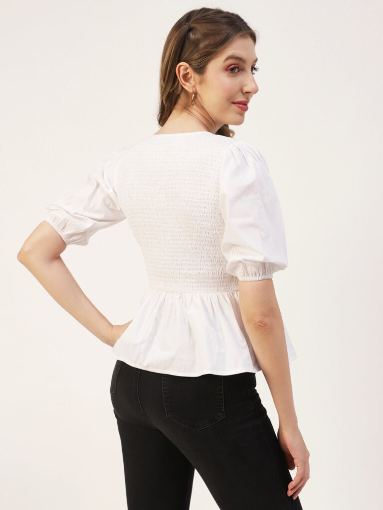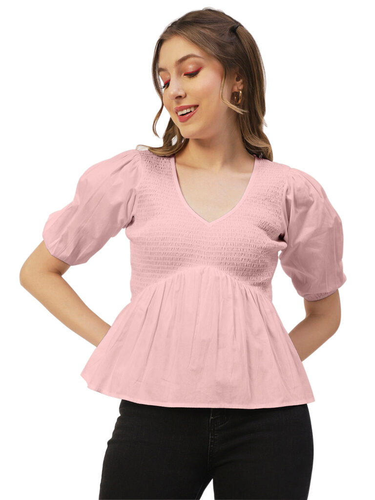 Smocked Elbow Sleeve Top
