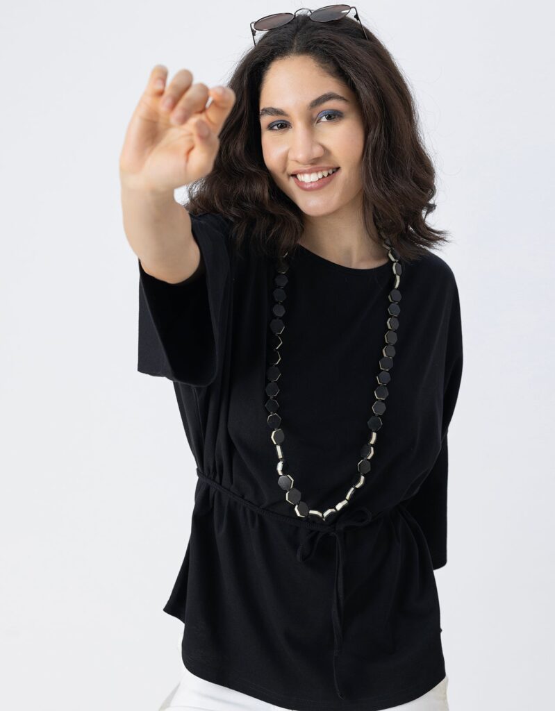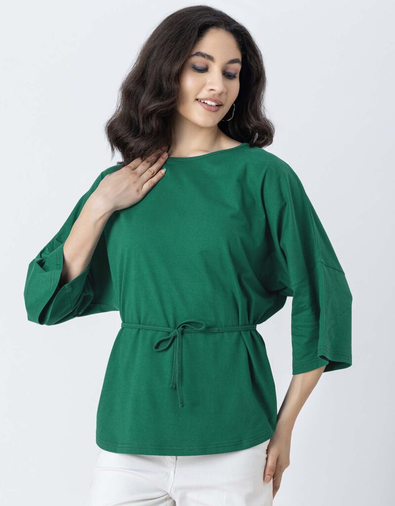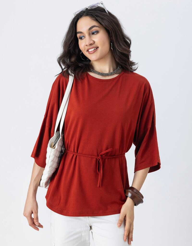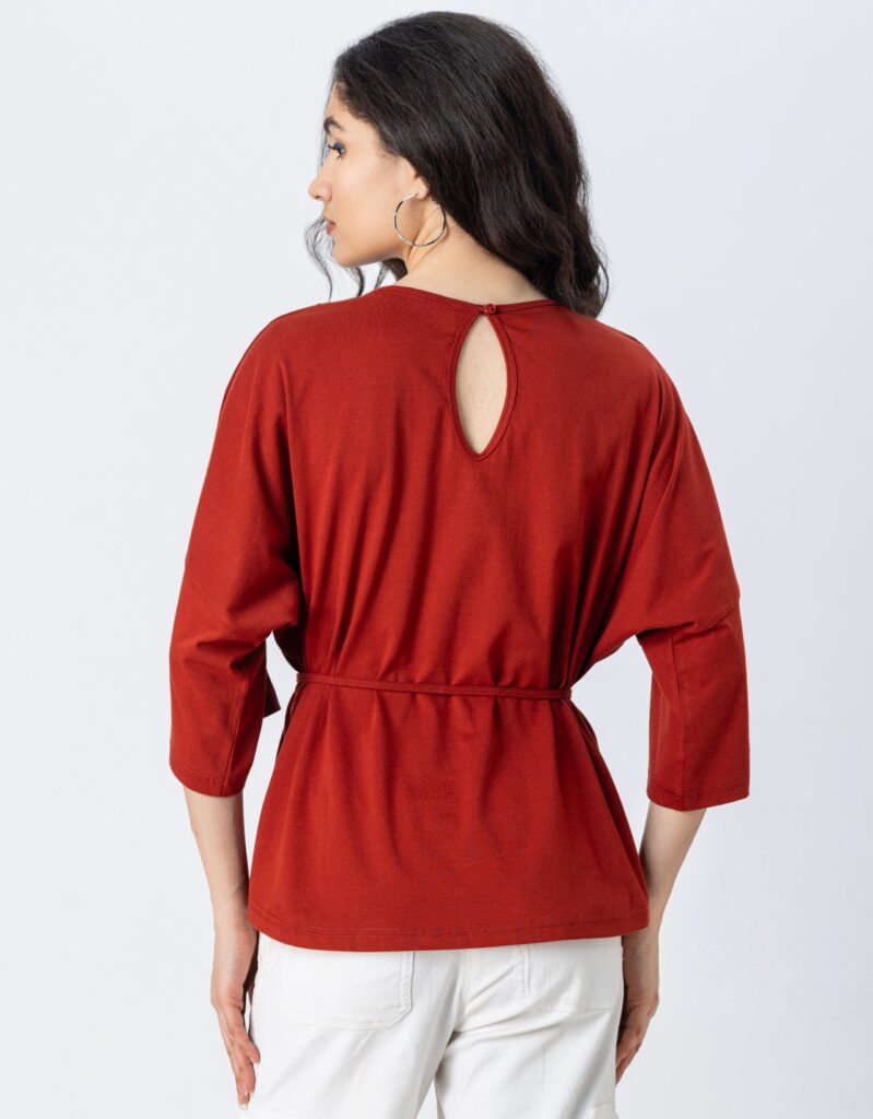 Tags: Cotton Tops For Women, 3/4Th Sleeve Tops For Women, Round Neck Tops For Women, Top With Keyhole On Back For Girls, Top With Drawstring For Girls.