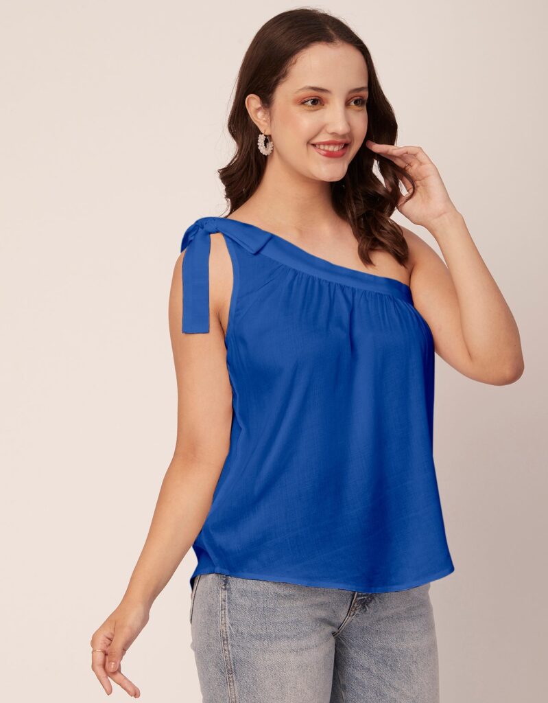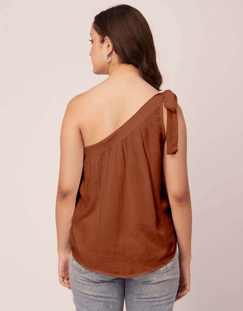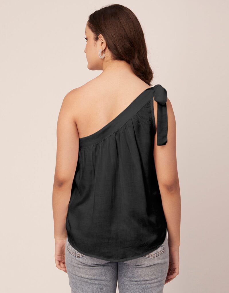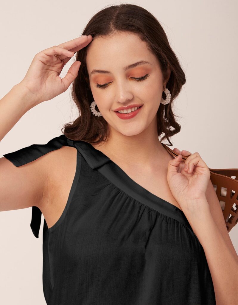 Features: One Shoulder, Regular Sized, Sleeveless, Lightweight And Solid Pattern
