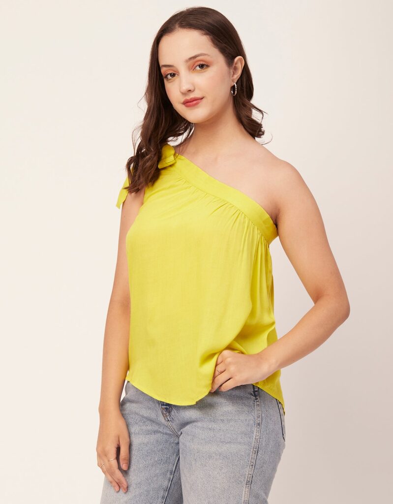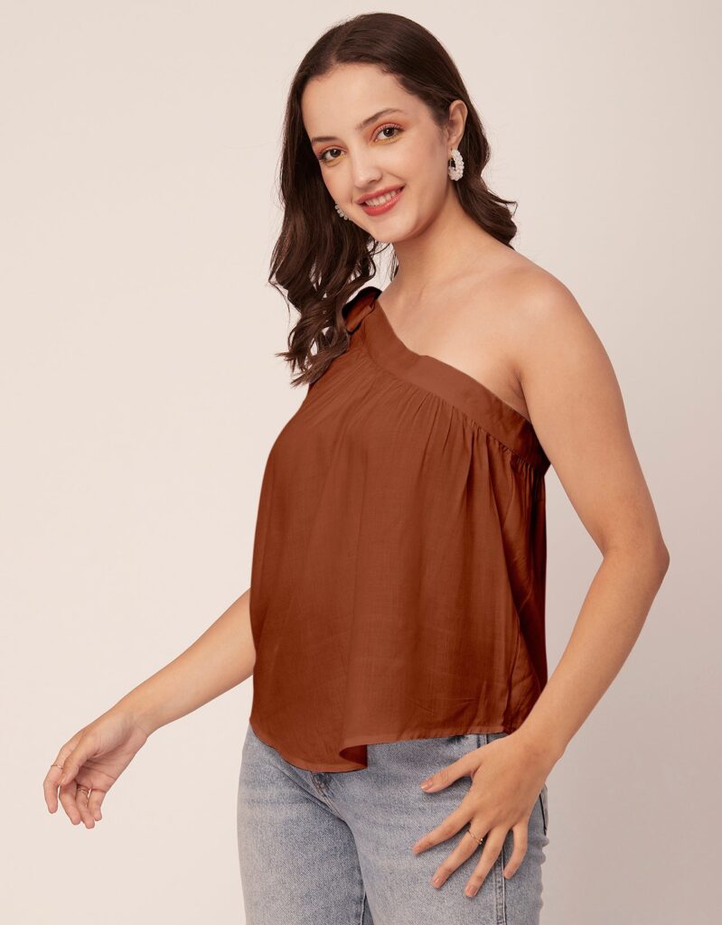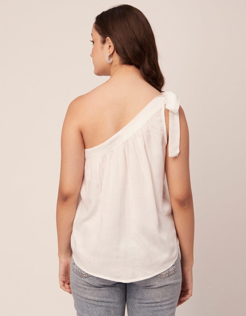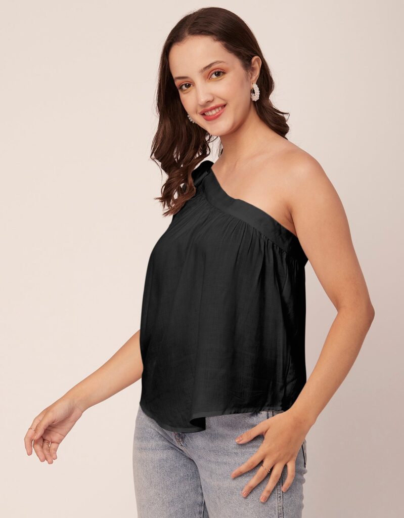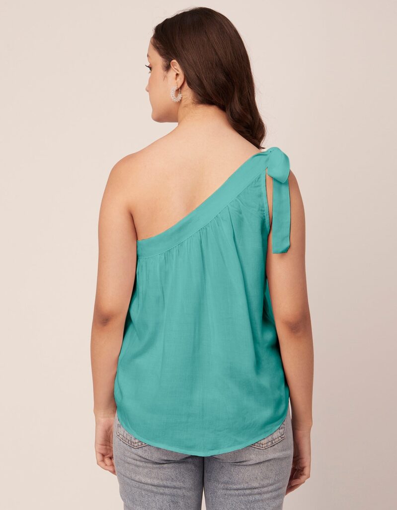 Features: One Shoulder, Regular Sized, Sleeveless, Lightweight And Solid Pattern